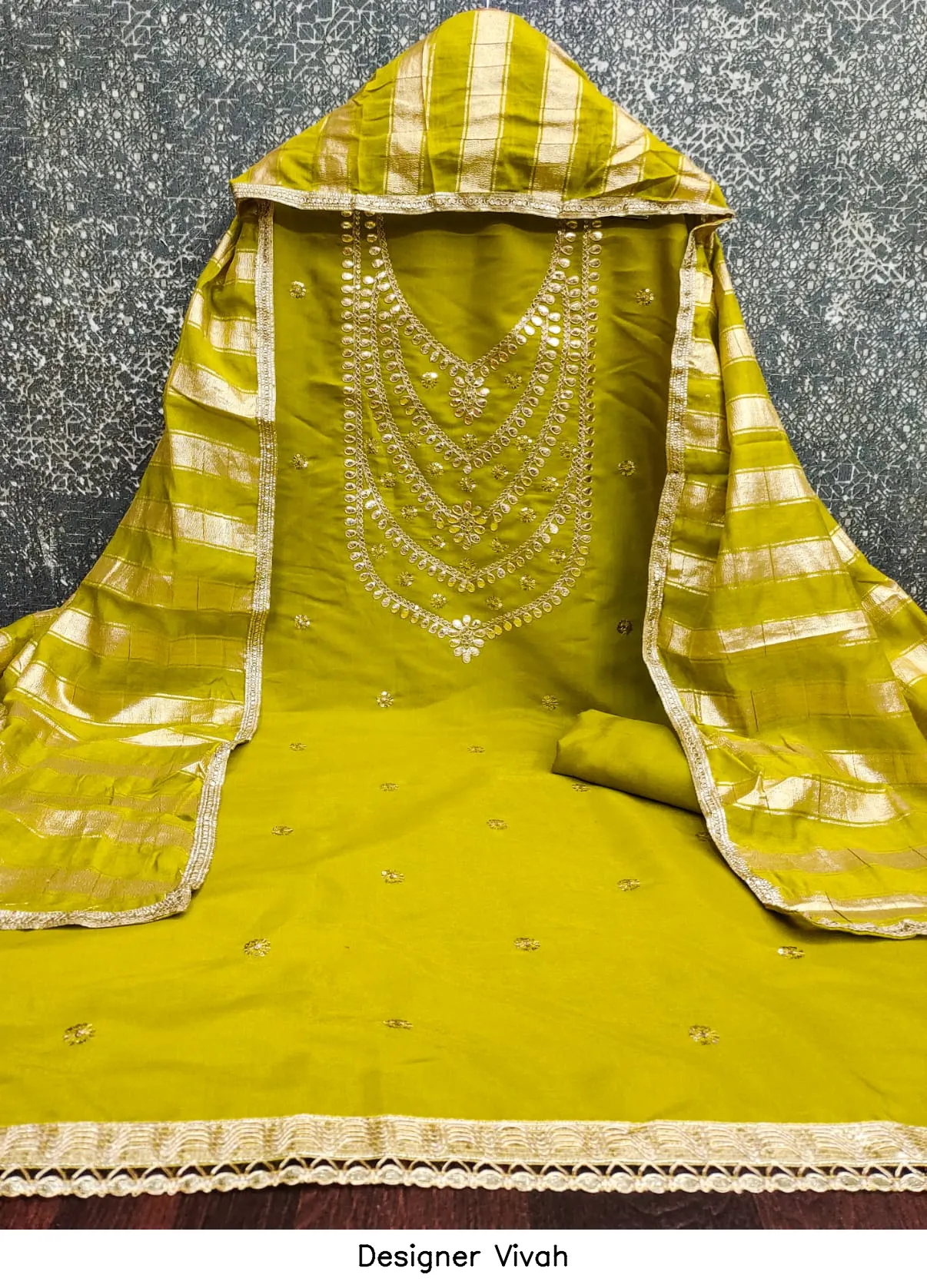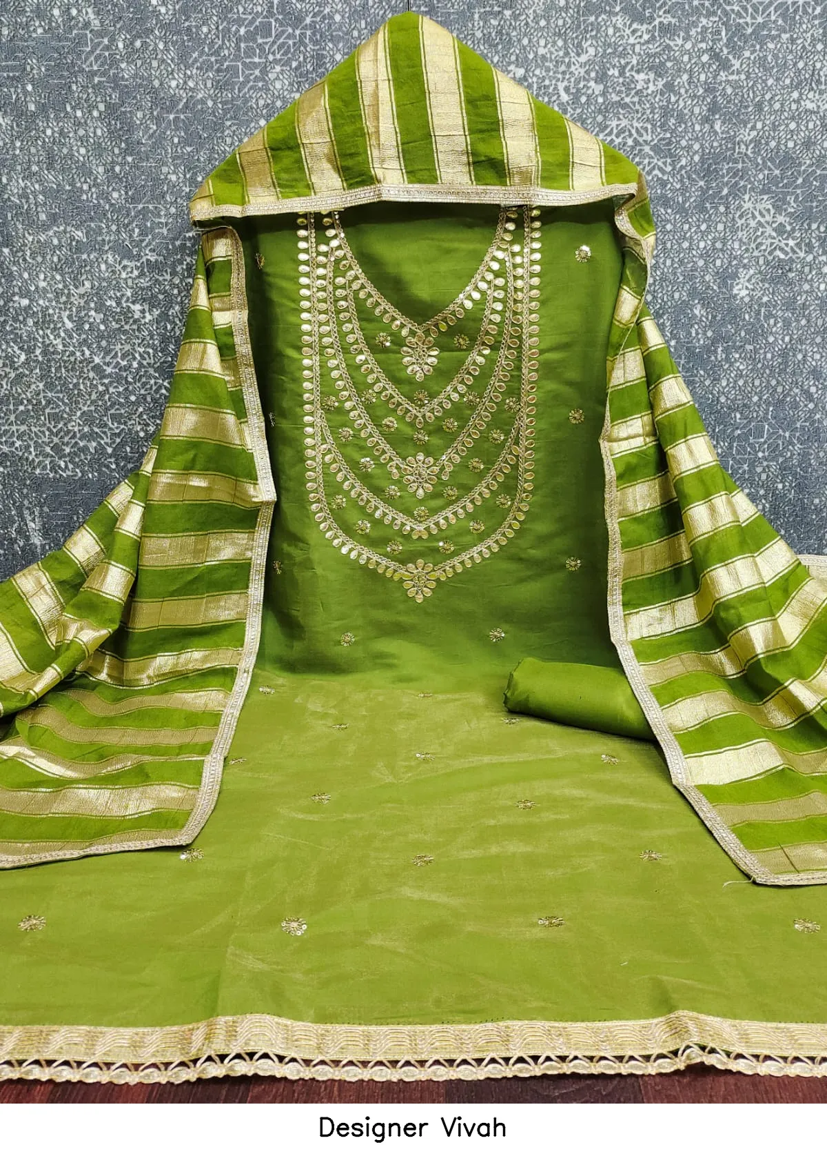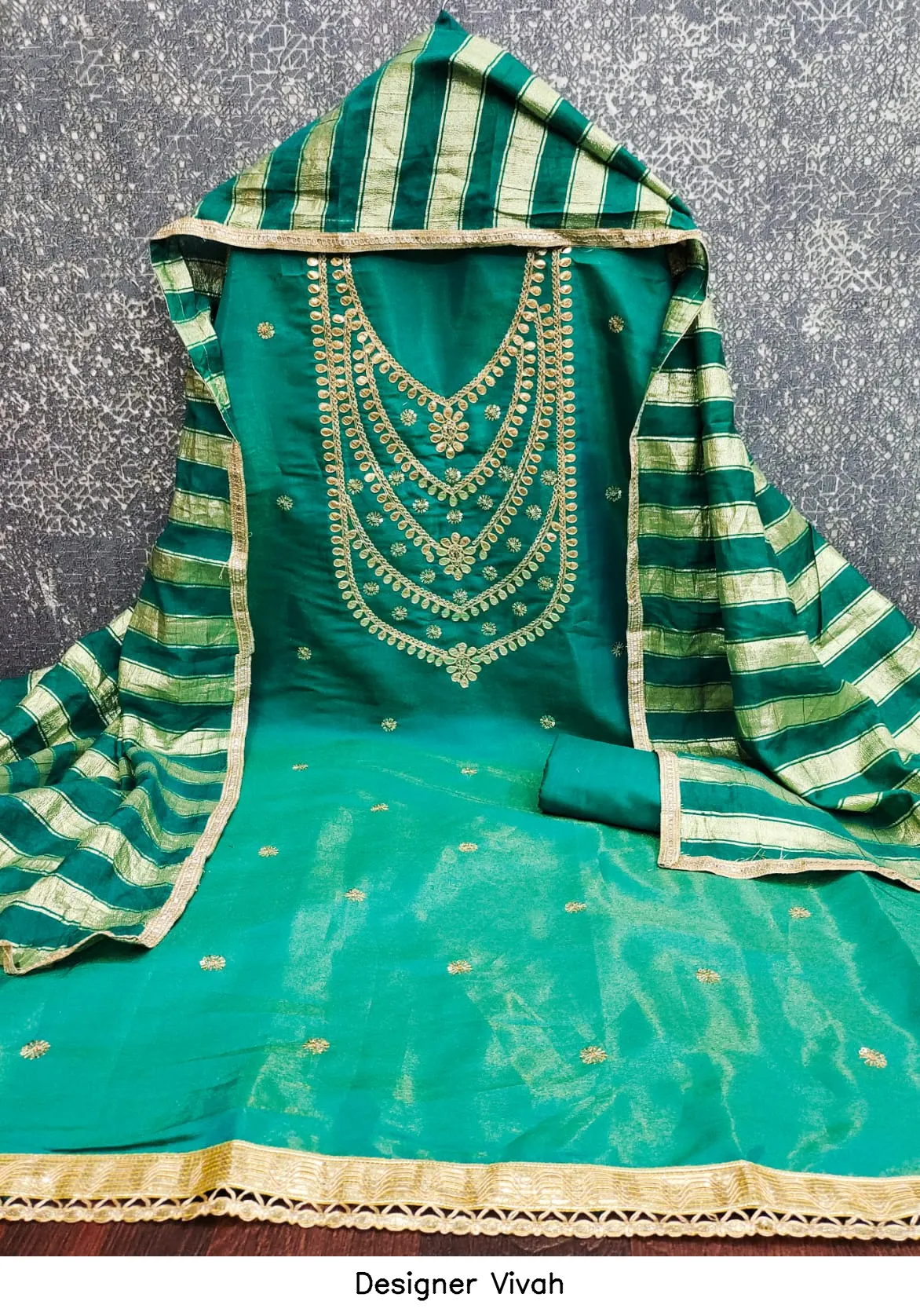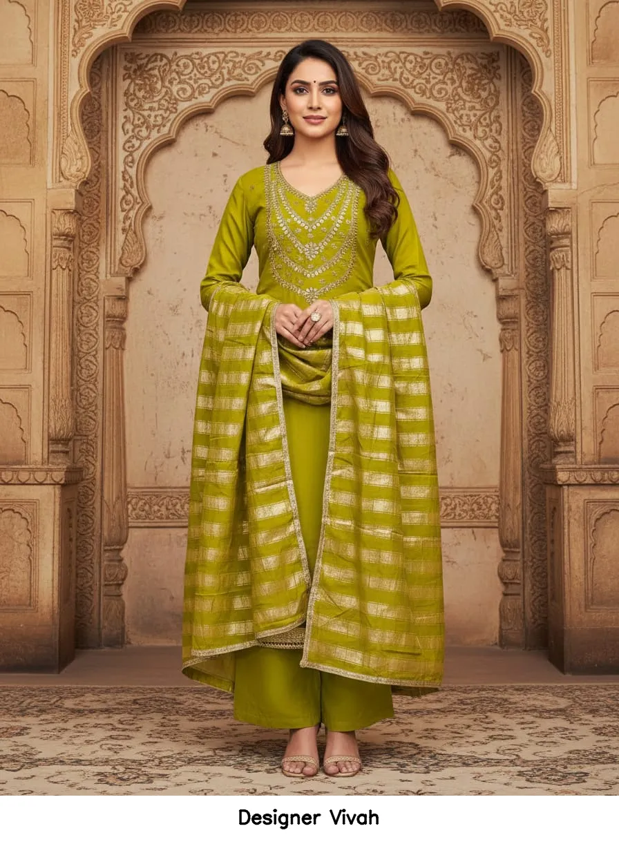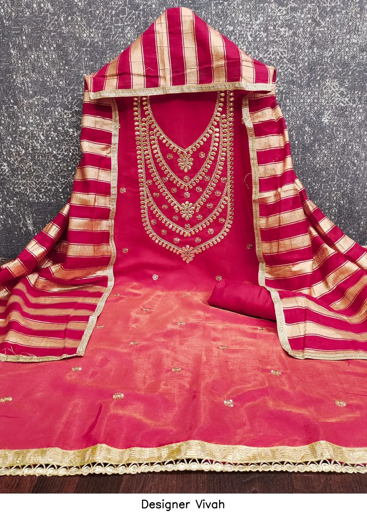 | Details | Top Fabric : Pv Roman Silk Kodding Gotapatti Bottom : Santoon Dupatta : Chanderi Silk Fancy Lining Zakard |