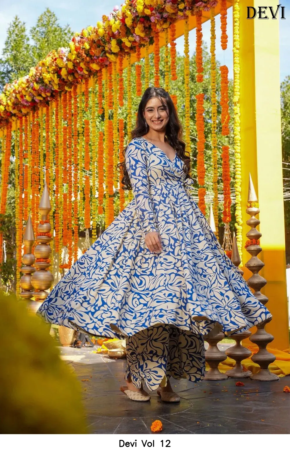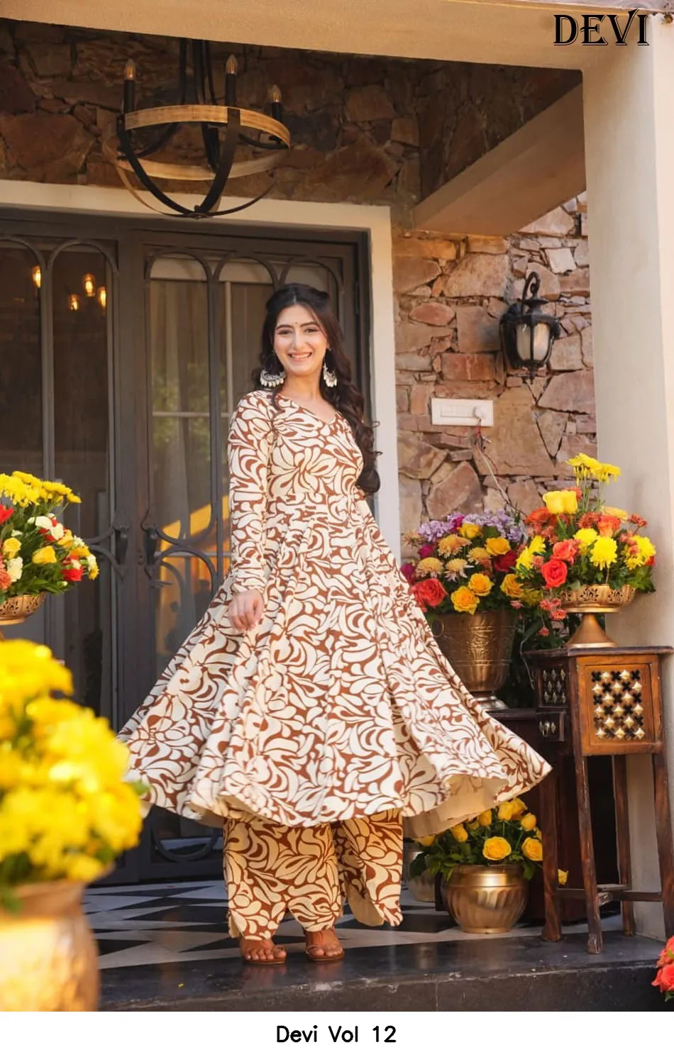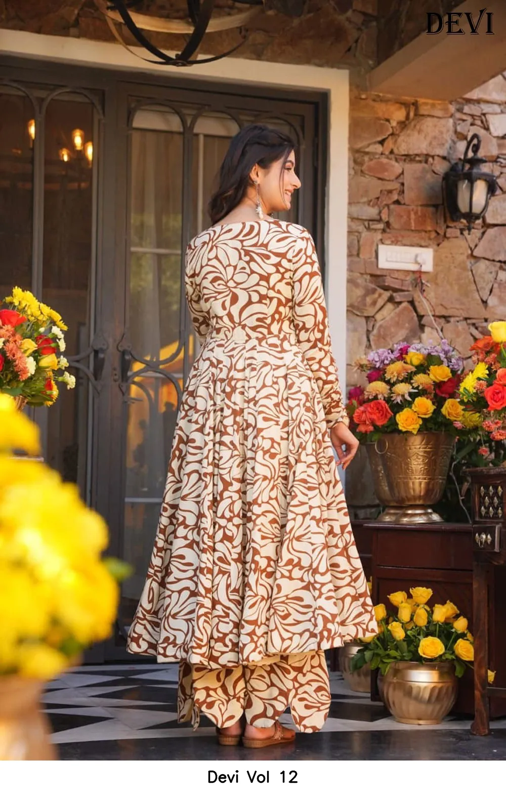| Details | Fabric Details – Cotton Silk | Inner – Heavy Crepe | Work – Heavy Digital Print | Top Length – Up to 48 | Bottom Length – Up to 40 | Flair – 4.50 Mtr |
