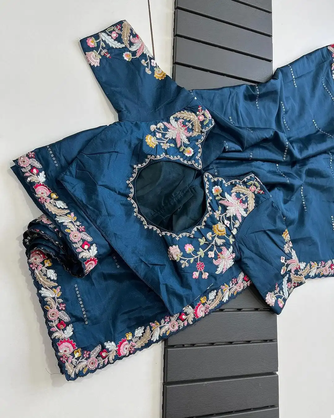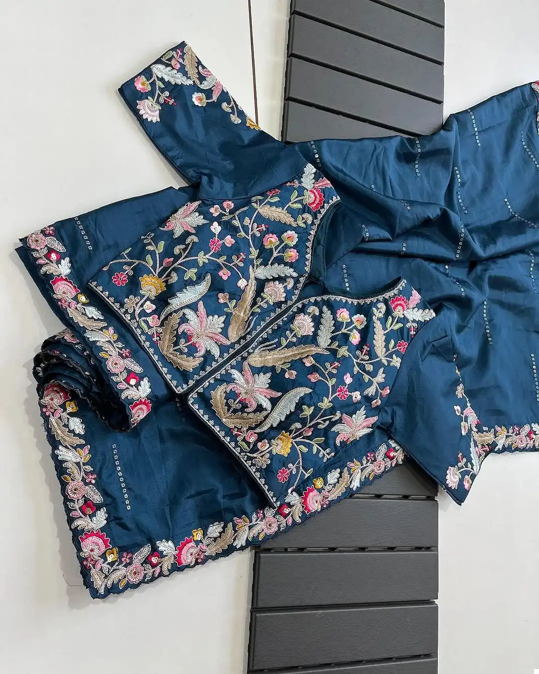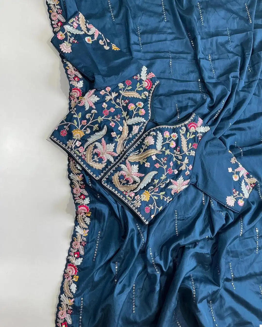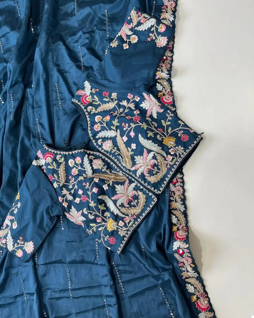 - Blouse: Paired with a designer stitched blouse or a readymade stitched blouse with freesize (40), our ensemble offers versatility and convenience. The blouse is expertly crafted to complement the saree, ensuring a seamless and flattering fit that accentuates your curves and enhances your silhouette.