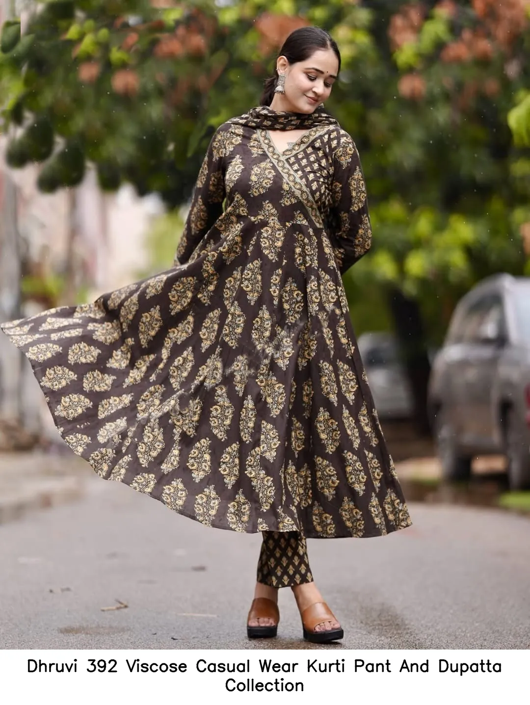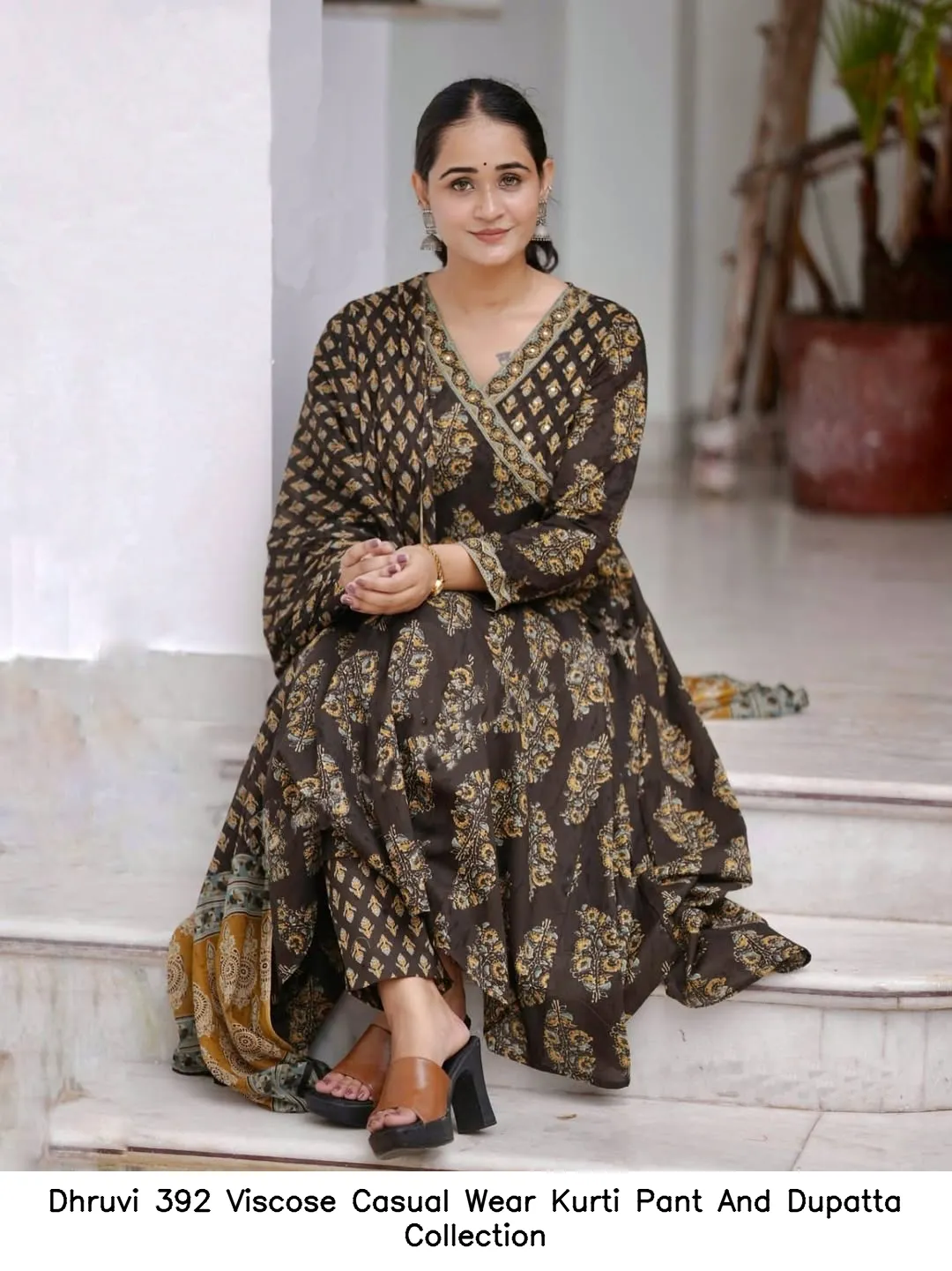 Dhruvi 392 Viscose Casual Wear Kurti Pant And Dupatta Collection