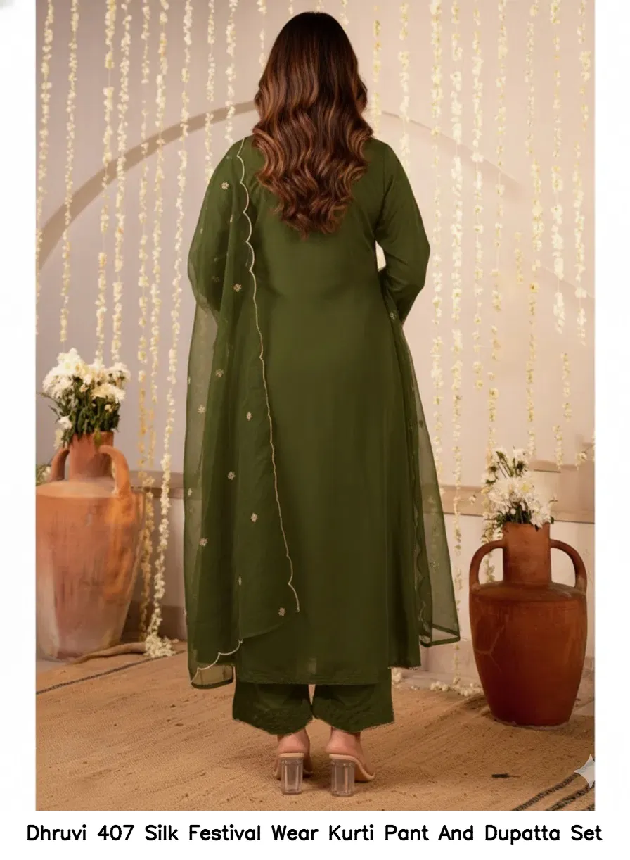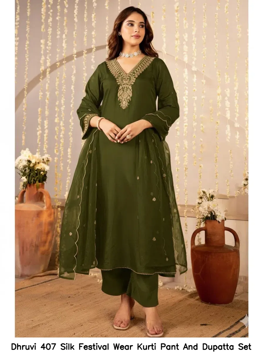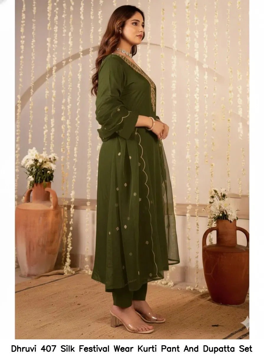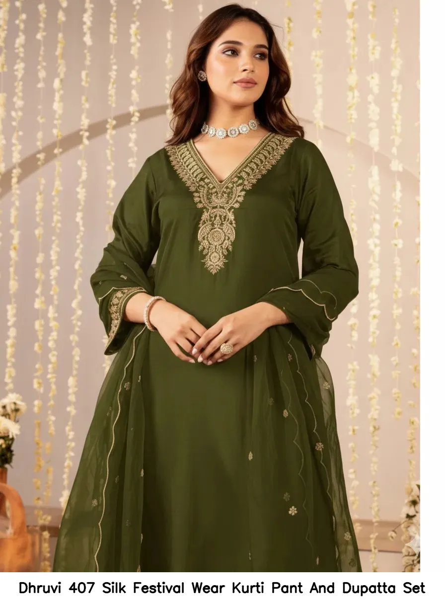 Dhruvi 407 Silk Festival Wear Kurti Pant And Dupatta Set