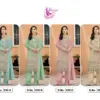 - Top: The top of this suit set is crafted from premium Heavy Georgette fabric, meticulously embroidered and adorned with heavy handwork. This intricate detailing adds a touch of opulence, making it an ideal choice for weddings, parties, or festive gatherings. The heavy handwork imparts a traditional charm that elevates the overall beauty of the outfit.