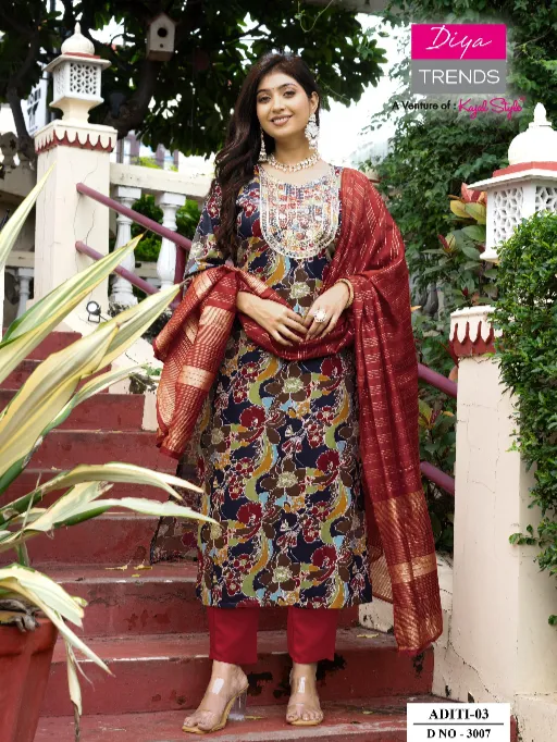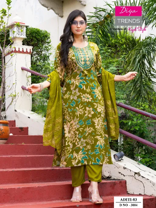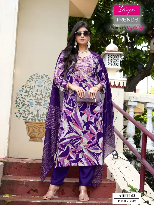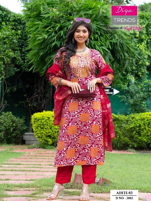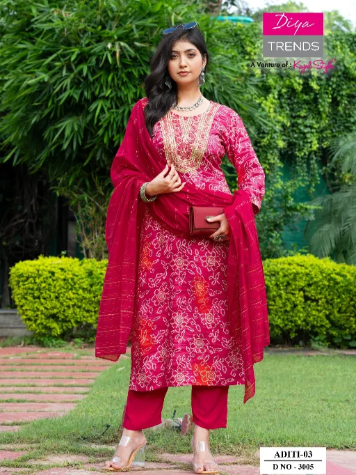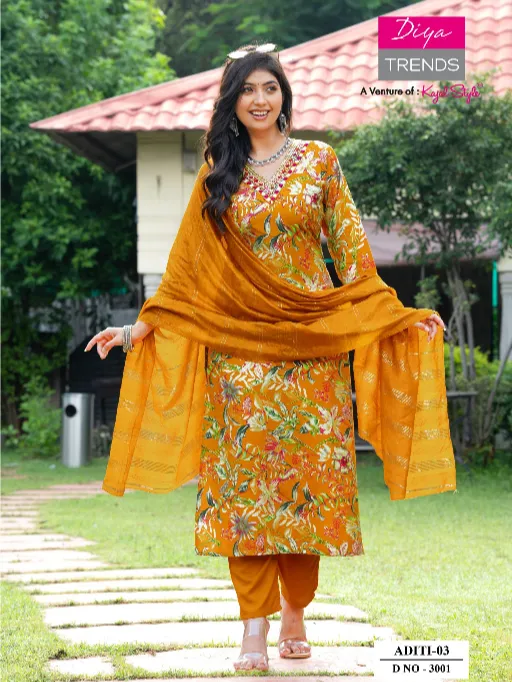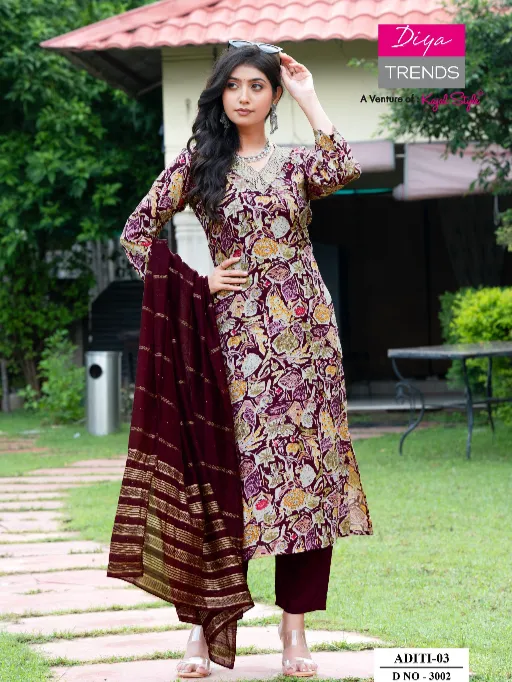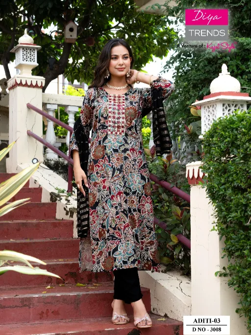Diya Trends Aditi Vol 3 Heavy Rayon Embroidery Kurti With Bottom Dupatta.