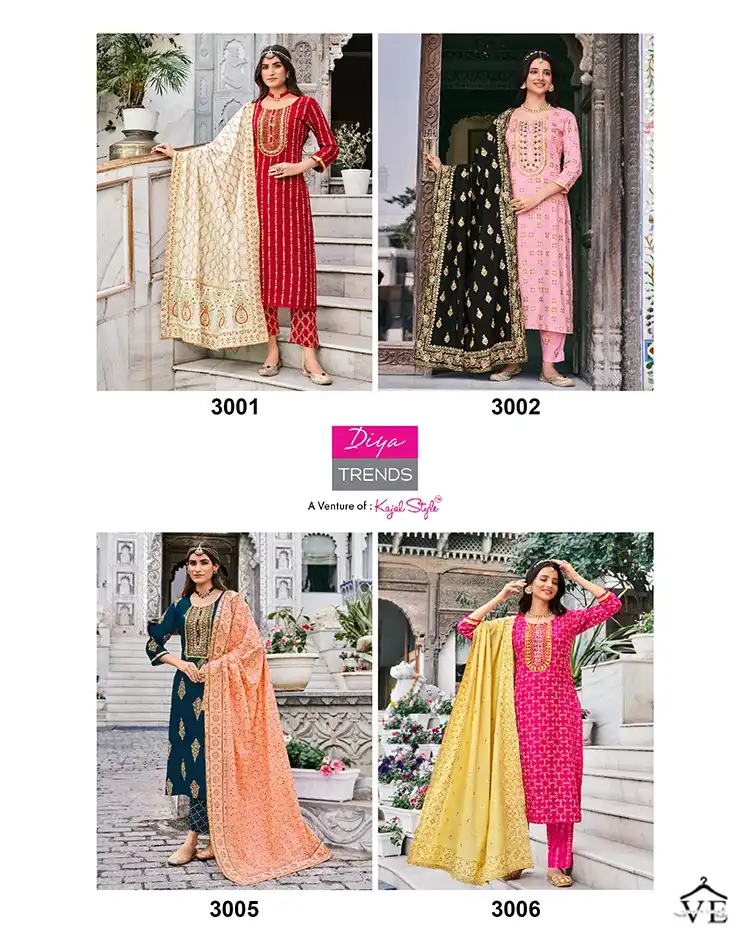 Diya Trends Alveera Vol 3 Rayon Wholesale Readymade Suits Catalog