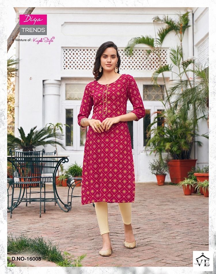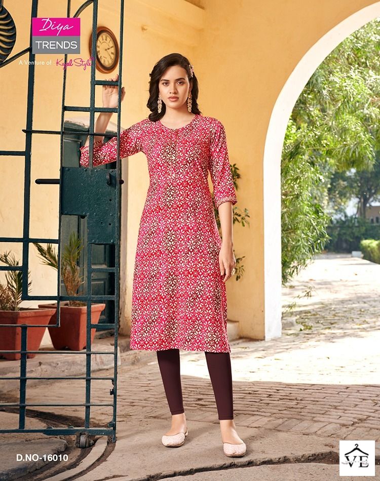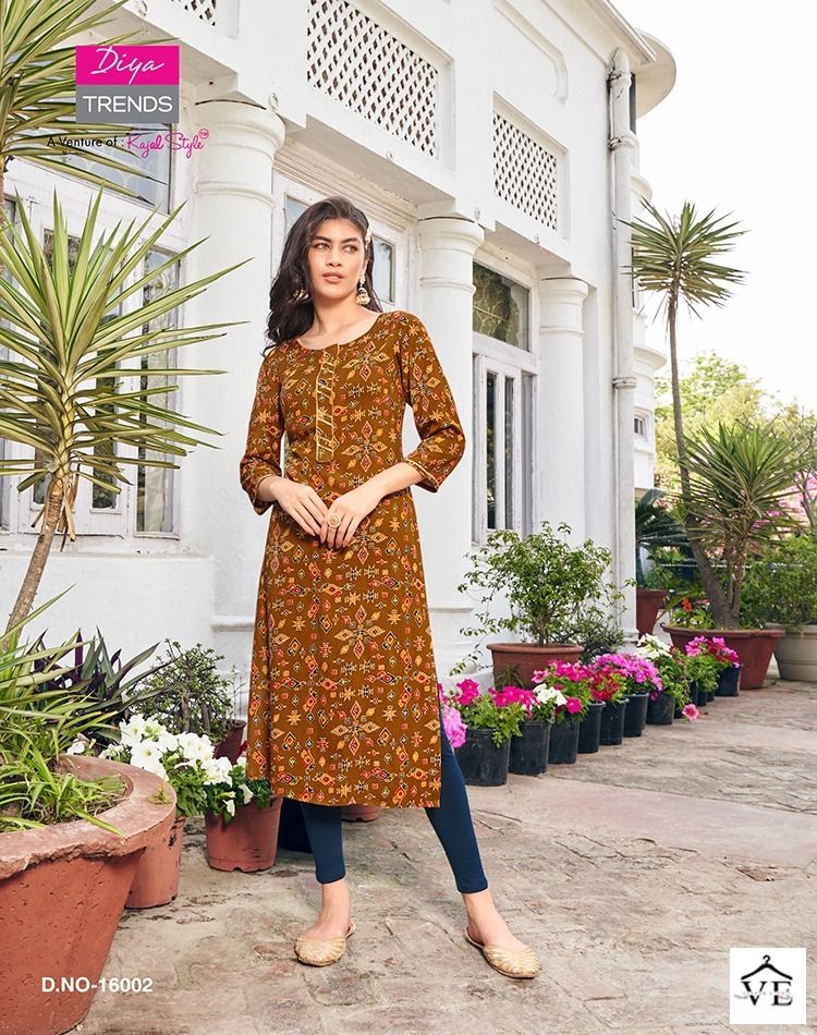 Diya Trends Gardencity Vol 16 Rayon Wholesale Straight Kurti Catalog of 10 Pcs. We deal in Kurtis, Sarees, Dresses Materials, Leggings, and Designer Salwar Kameez.