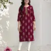 - Top: Rayon Printed + Gold Embroidery – This describes the top part of the outfit, which is made of rayon fabric with printed design and gold embroidery.