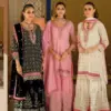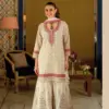 - The beautifully designed georgette top features delicate fancy embellishments, perfectly paired with a stylish georgette sharara, offering a trendy yet traditional silhouette. Completing the ensemble is a matching georgette dupatta with work, making it ideal for festive evenings and grand celebrations.