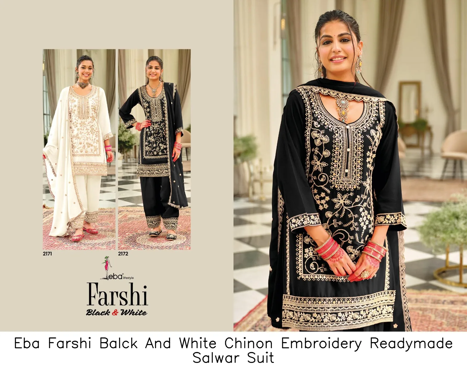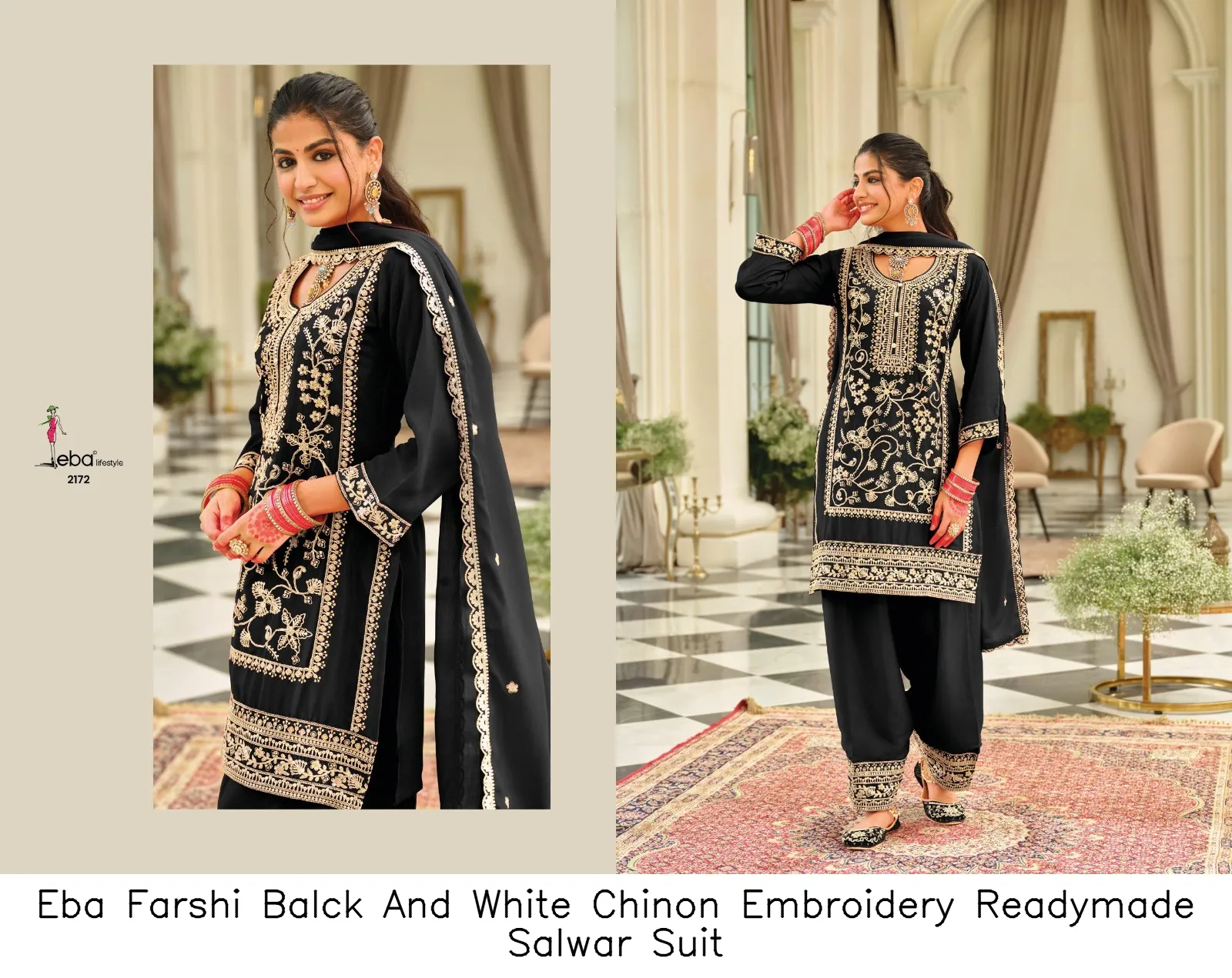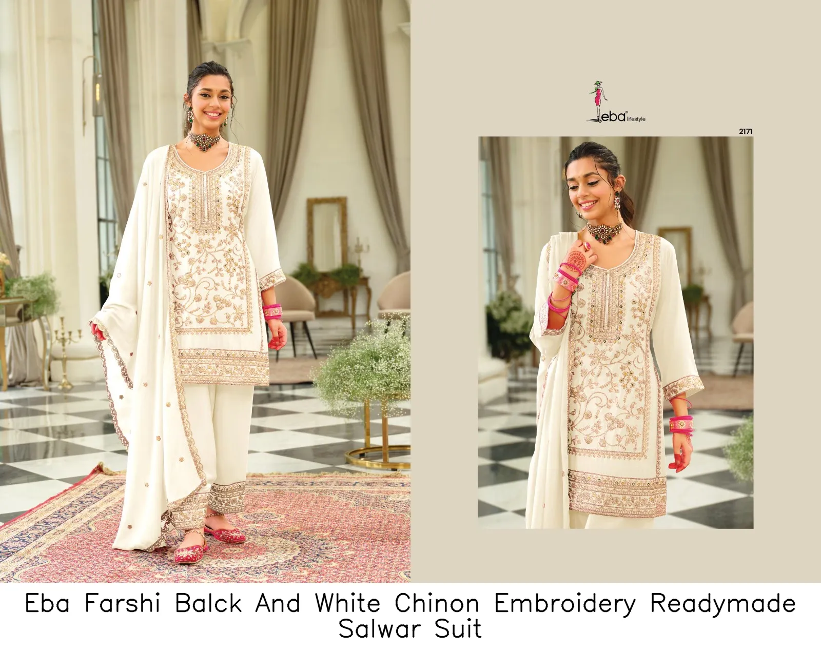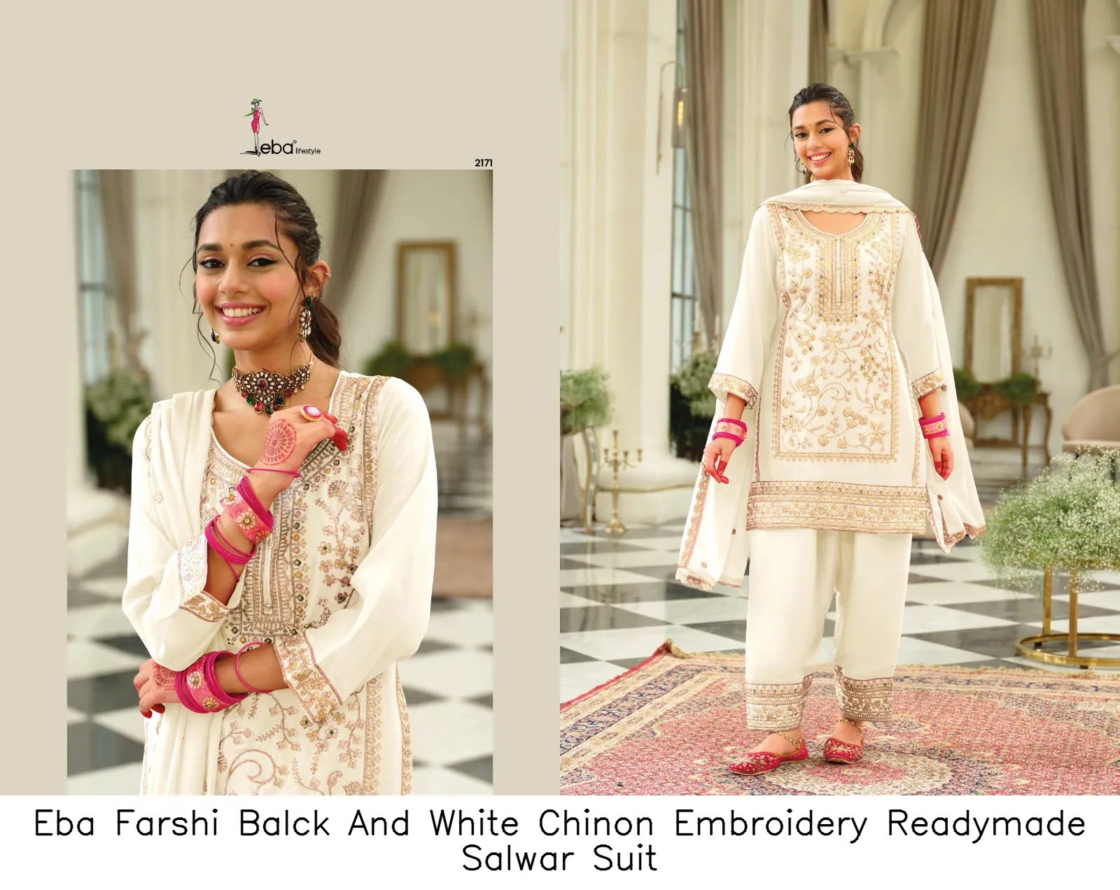 Eba Farshi Balck And White Chinon Embroidery Readymade Salwar Suit