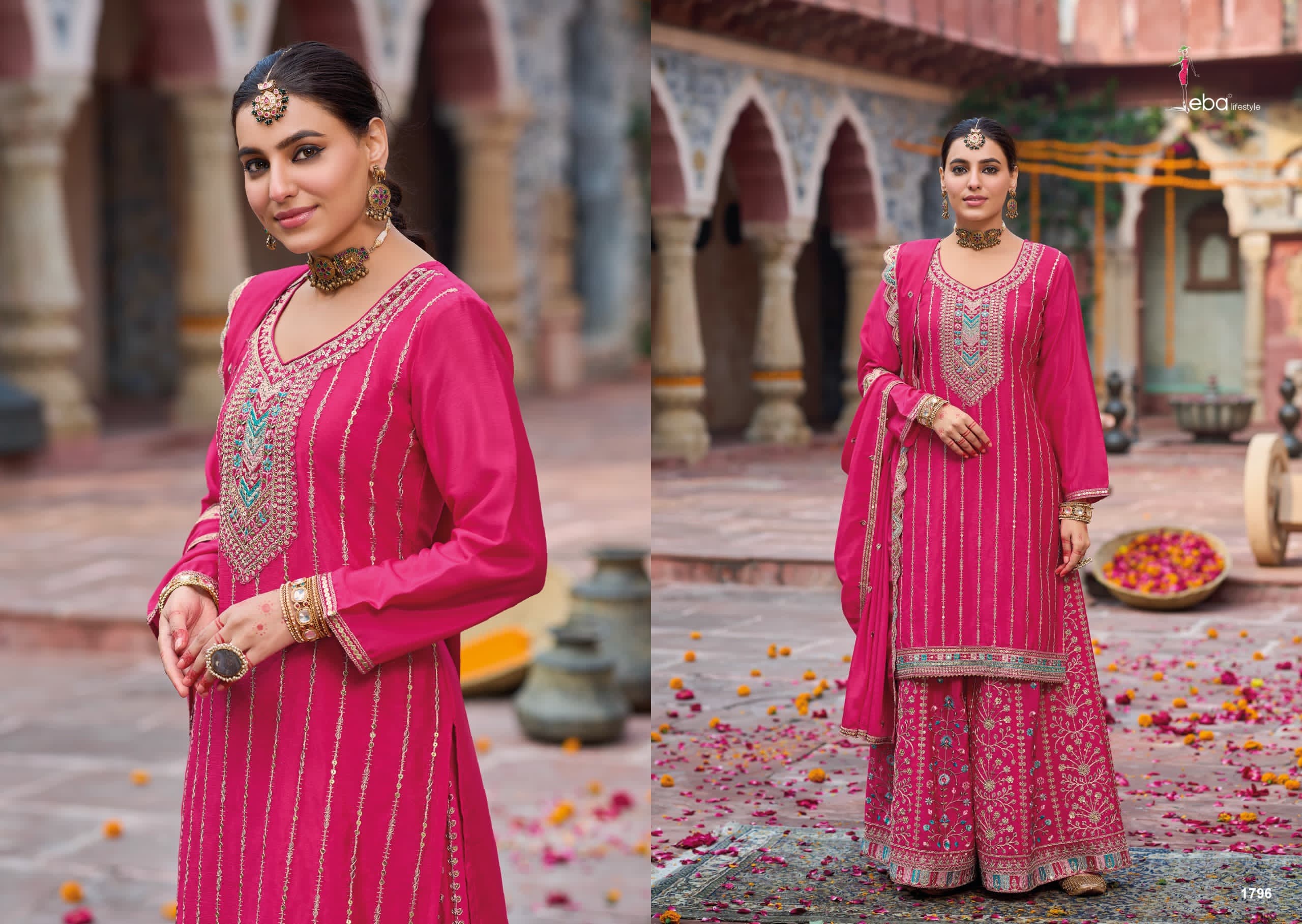 Introducing the Sahenaaz Designer Collection, a stunning ensemble crafted from luxurious Heavy Chinon fabric and adorned with exquisite embroidery. This set is perfect for making a statement at festive occasions, weddings, and celebrations.