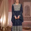 Put your best foot forward in this stunning Nyra Cut Georgette Salwar Suit. Whether you’re attending a wedding, party, or any other special occasion, this beautiful outfit will make sure all eyes are on you. Crafted from georgette fabric, this salwar suit set is decorated with intricate embroidery and stone work to add an extra hint of glitz and glamour. Get ready to make heads turn!