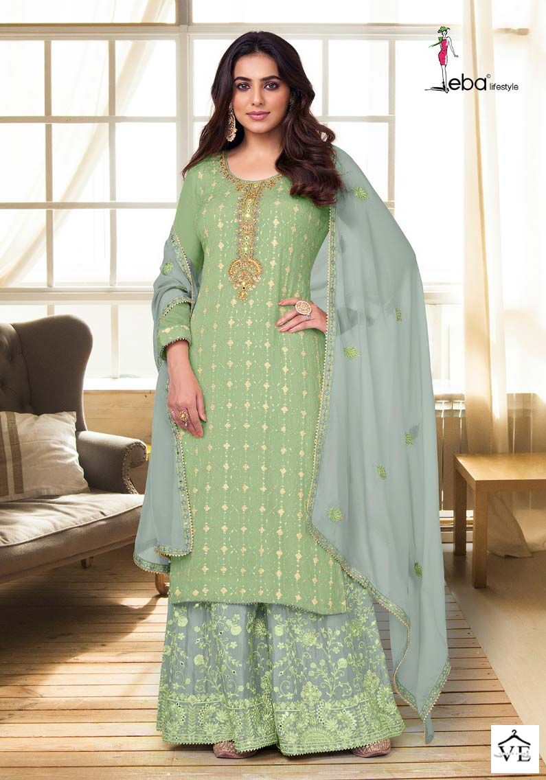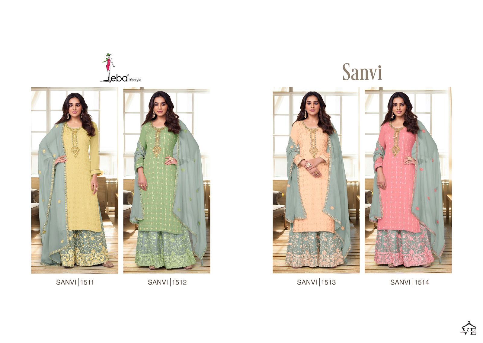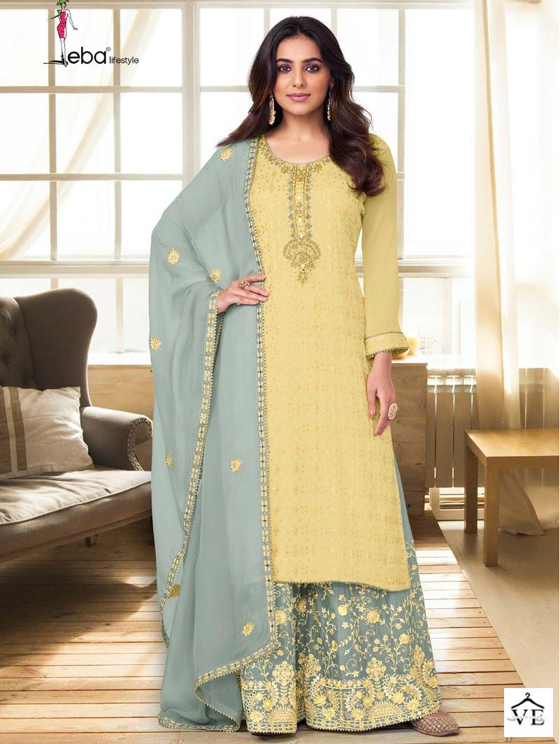 Eba Lifestyle Sanvi Chinon Wholesale Designer Salwar Suit Catalog 4 Pcs. We deal in Kurtis, Sarees, Dresses Materials, Leggings, and Designer Salwar Kameez.