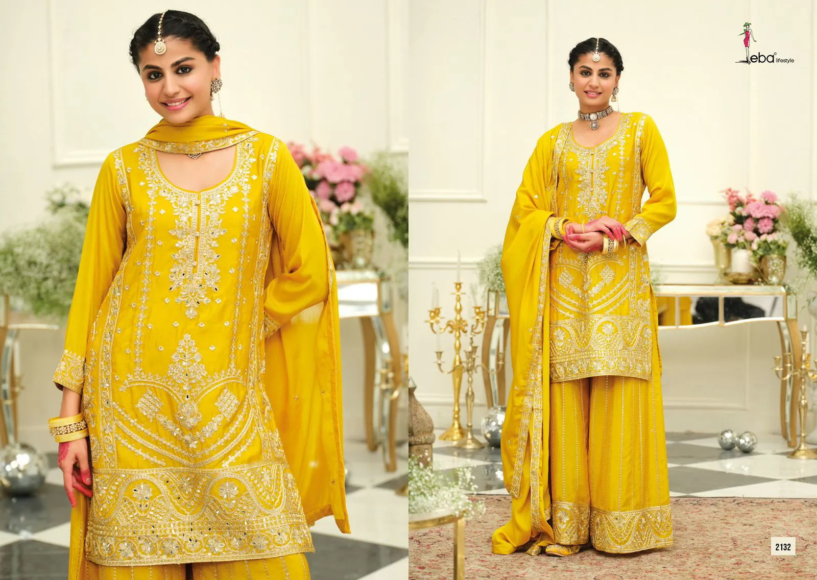 Product Name: Eba Maisha Chinon With Embroidered Work Readymade Set
