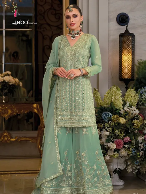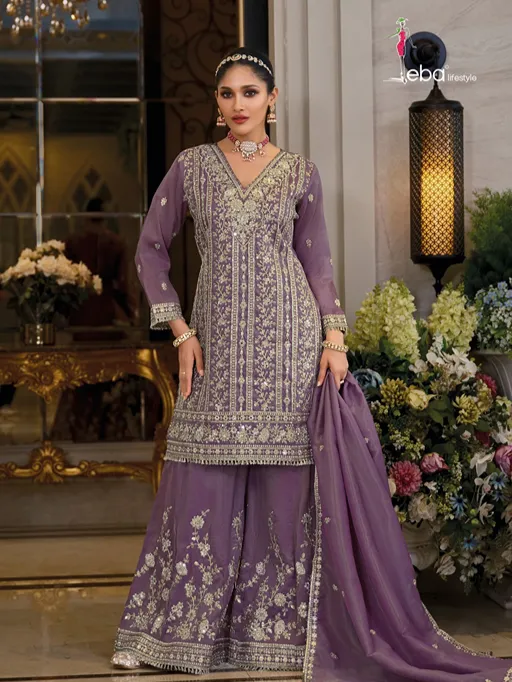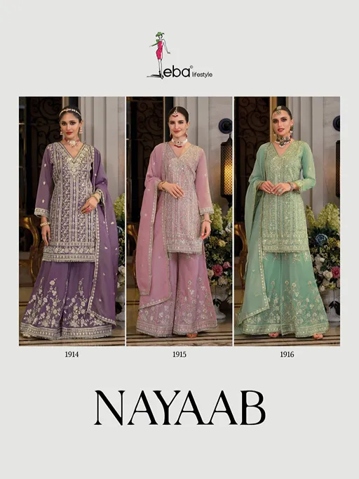 Shop Eba Nayaab shimmer embroidered suit set in luxurious finish. Premium festive wear collection available online at wholesale from Vardan Ethnic. (145 characters)