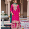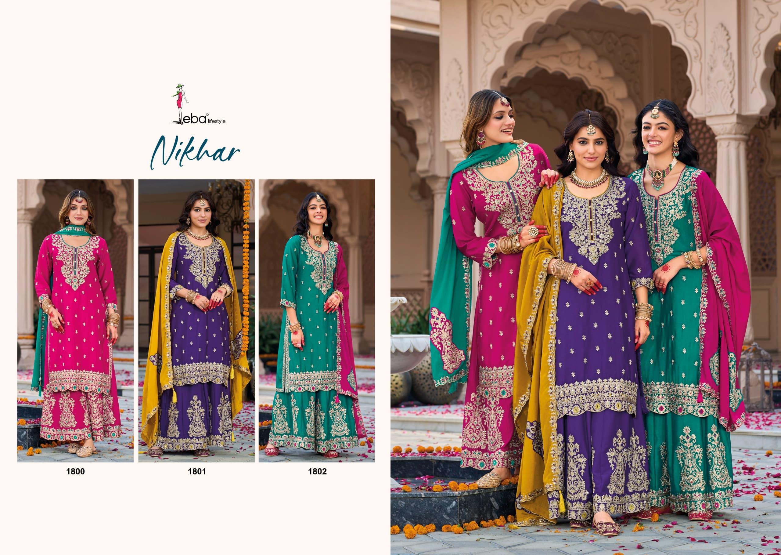 Step into elegance with Eba Nikhar, a premium Chinon embroidered suit collection designed for grandeur and sophistication. This stunning ensemble includes: