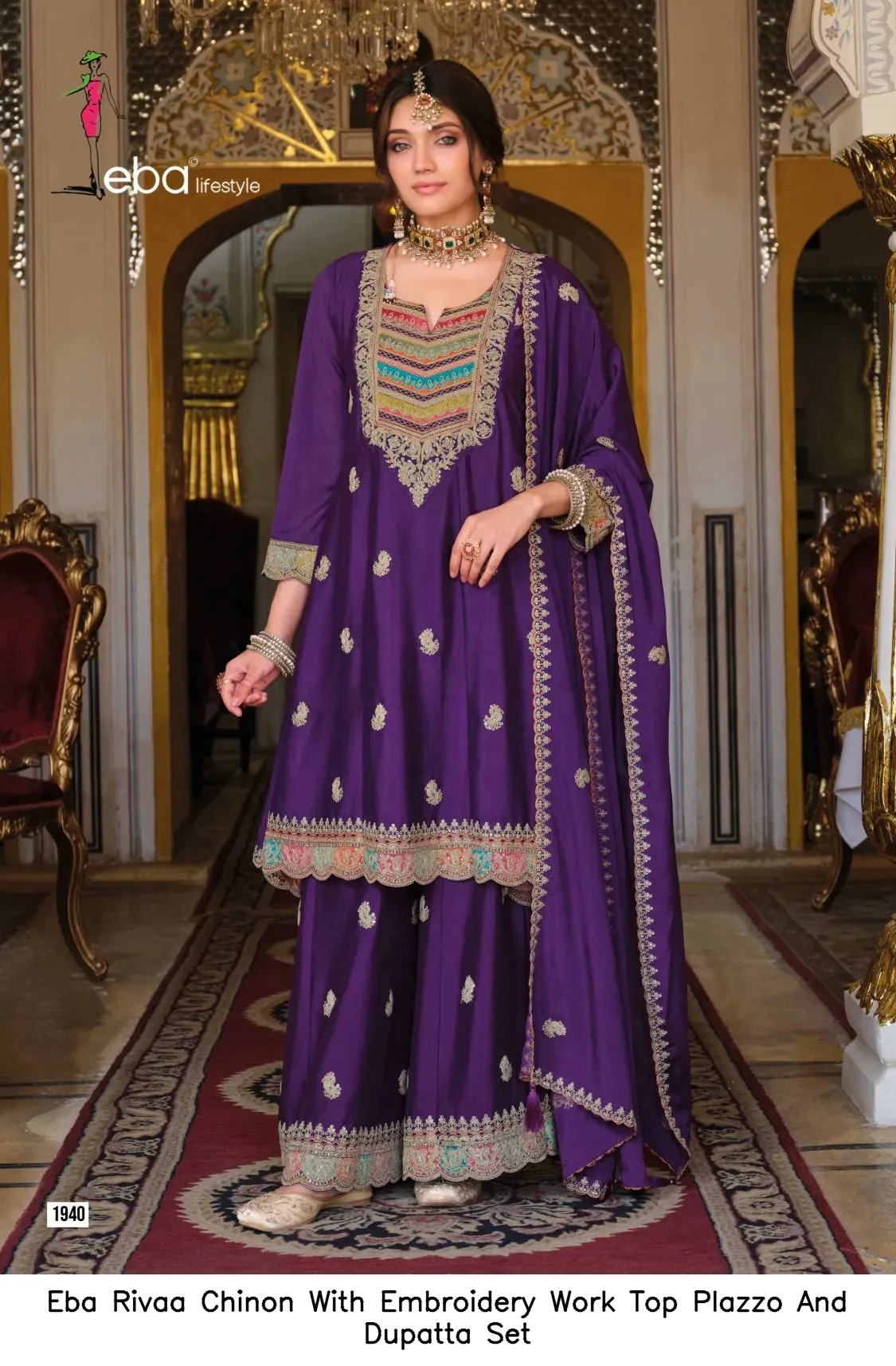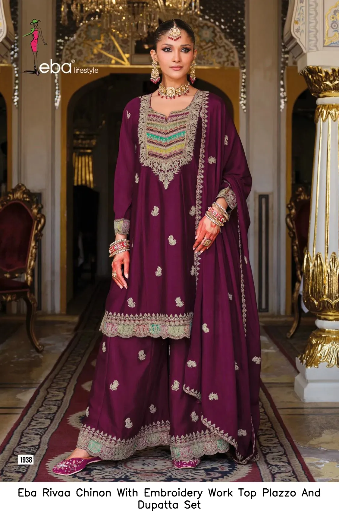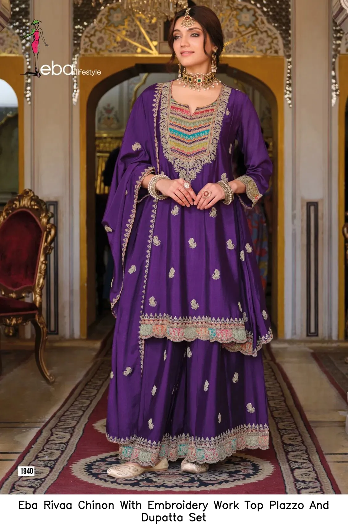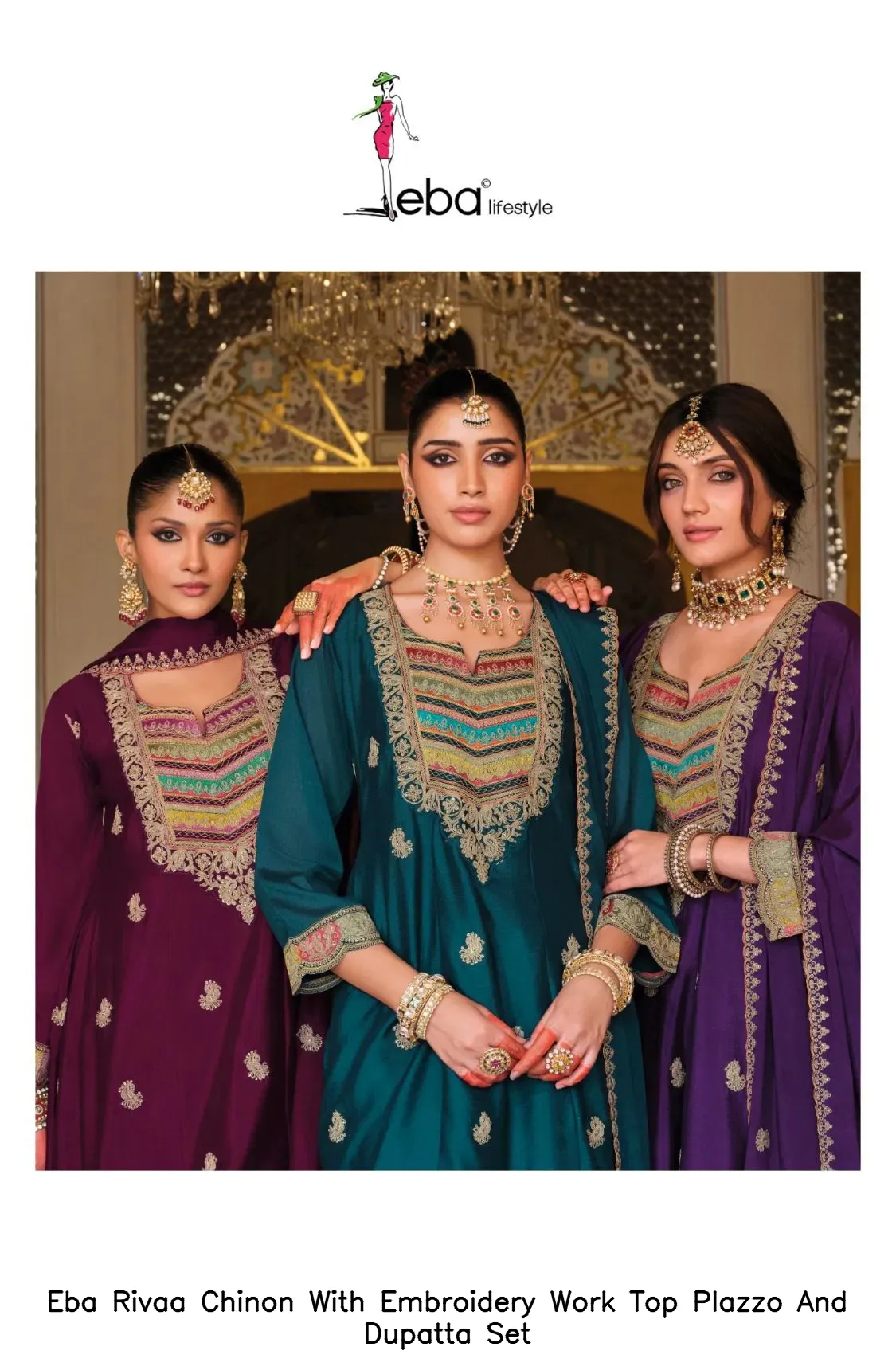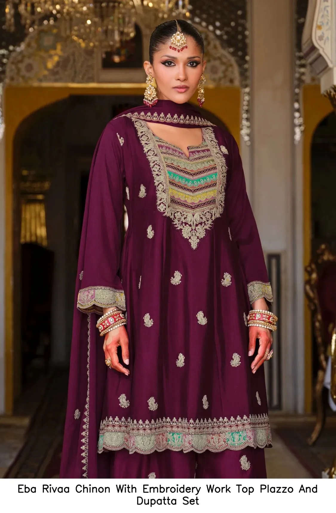 Eba Rivaa Chinon With Embroidery Work Top Plazzo And Dupatta Set