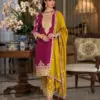 - Silk Bottom with Matching Embroidery: The free-size bottoms, also in Premium Silk, have coordinating embroidery, enhancing the suit’s elegance.
