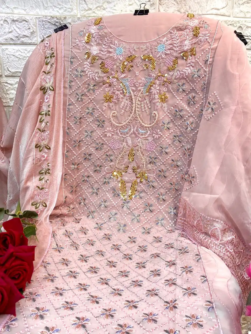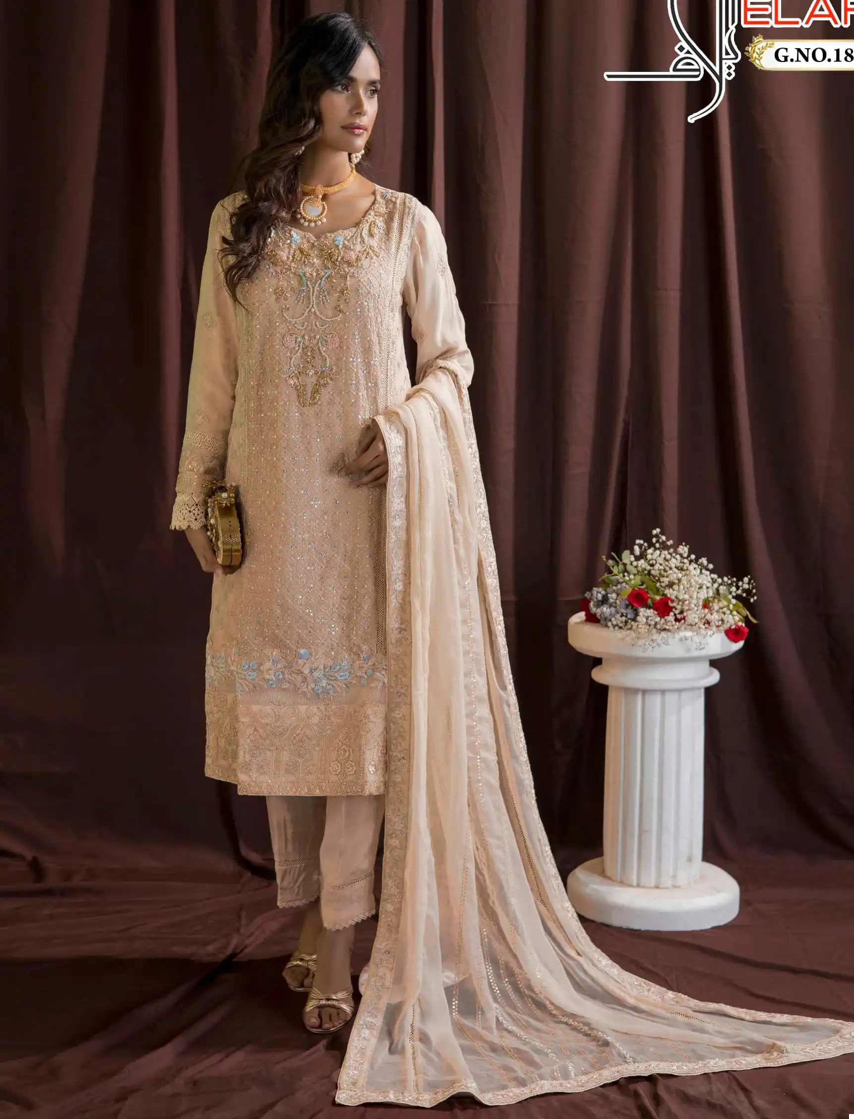 Elevate your ethnic wardrobe with this exquisite Heavy Faux Georgette Embroidered Suit Set. It combines the richness of heavy embroidery with the elegance of faux georgette fabric. Perfect for special occasions and celebrations, this suit set is available for you to pick and choose.