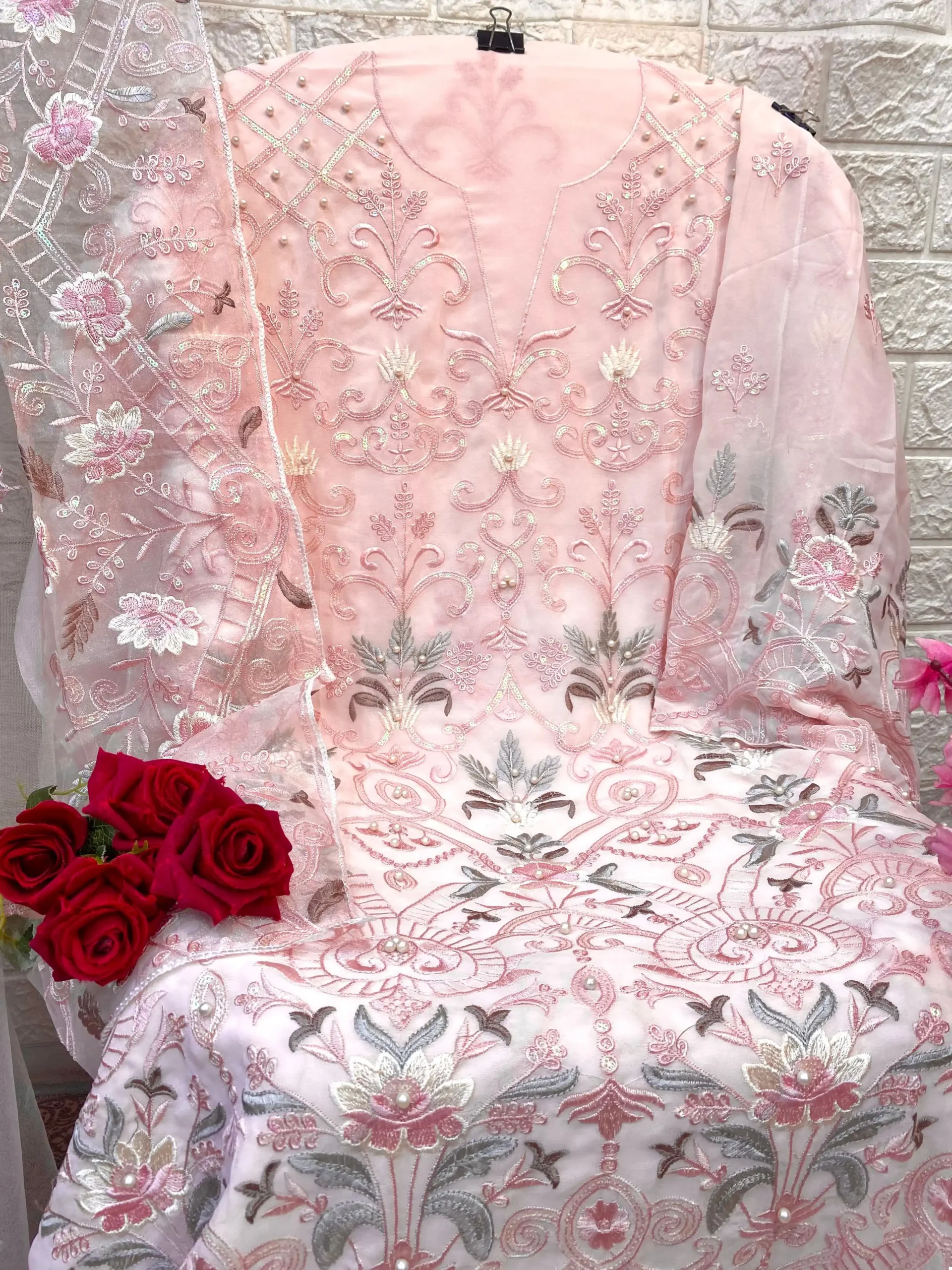 Luxurious Heavy Faux Georgette Suit Set with Pearl Work – Elegance Redefined at ₹1199