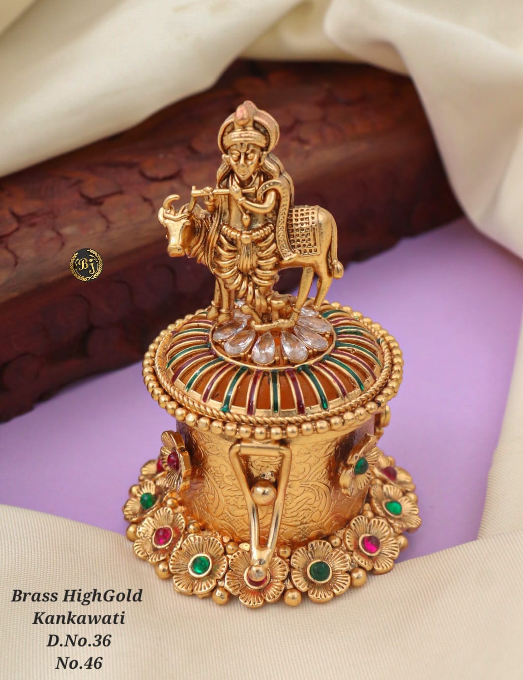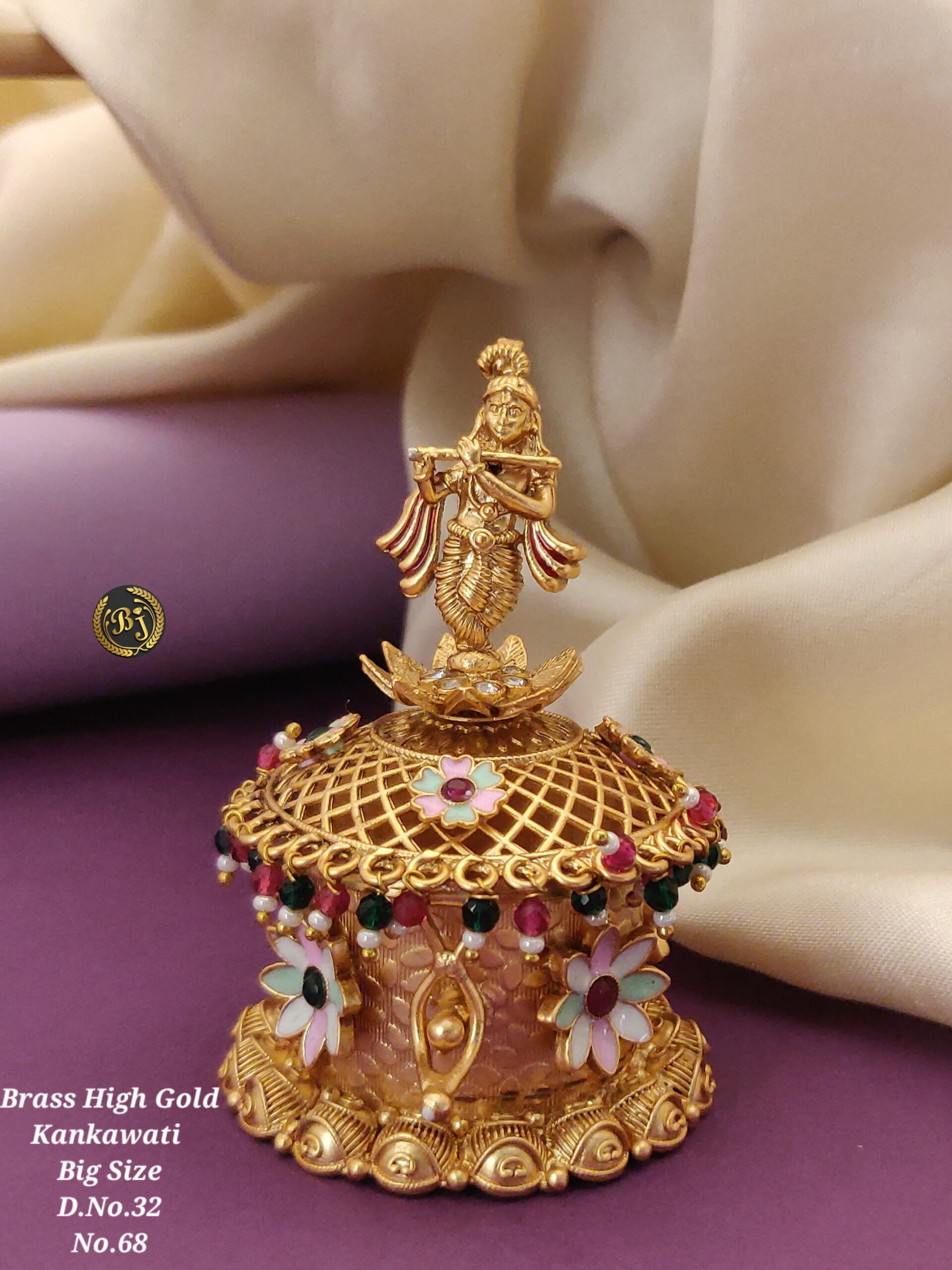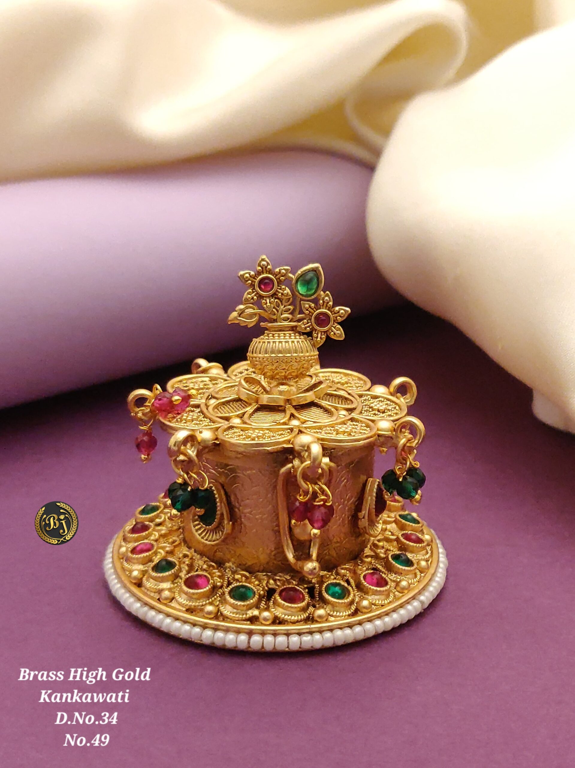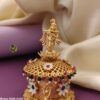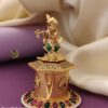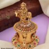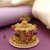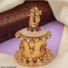 - Design: Intricately handcrafted with a floral lid adorned with ruby and emerald-colored stones, paired with delicate meenakari work