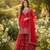 - Available in multiple sizes with extra margin for alteration, this Anarkali Sharara set is ideal for women seeking a blend of traditional craftsmanship and modern comfort.