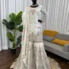 Elegant JMC Silk Anarkali Sharara Set with Embroidery & Dupatta