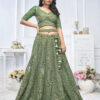Perfect for mehendi or wedding festivities, this green lehenga pairs beautifully with traditional gold jewelry to enhance its intricate embroidery. Opt for a sleek bun or braided hairstyle adorned with fresh flowers to complete the look. The lehenga is versatile enough to suit a range of occasions, from grand family functions to elegant evening events. With its exquisite craftsmanship and unique design, it ensures you stand out in style.