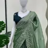 Shop Elegant Olive Green Burberry with Thread & Sequence Work Silk Saree Collection