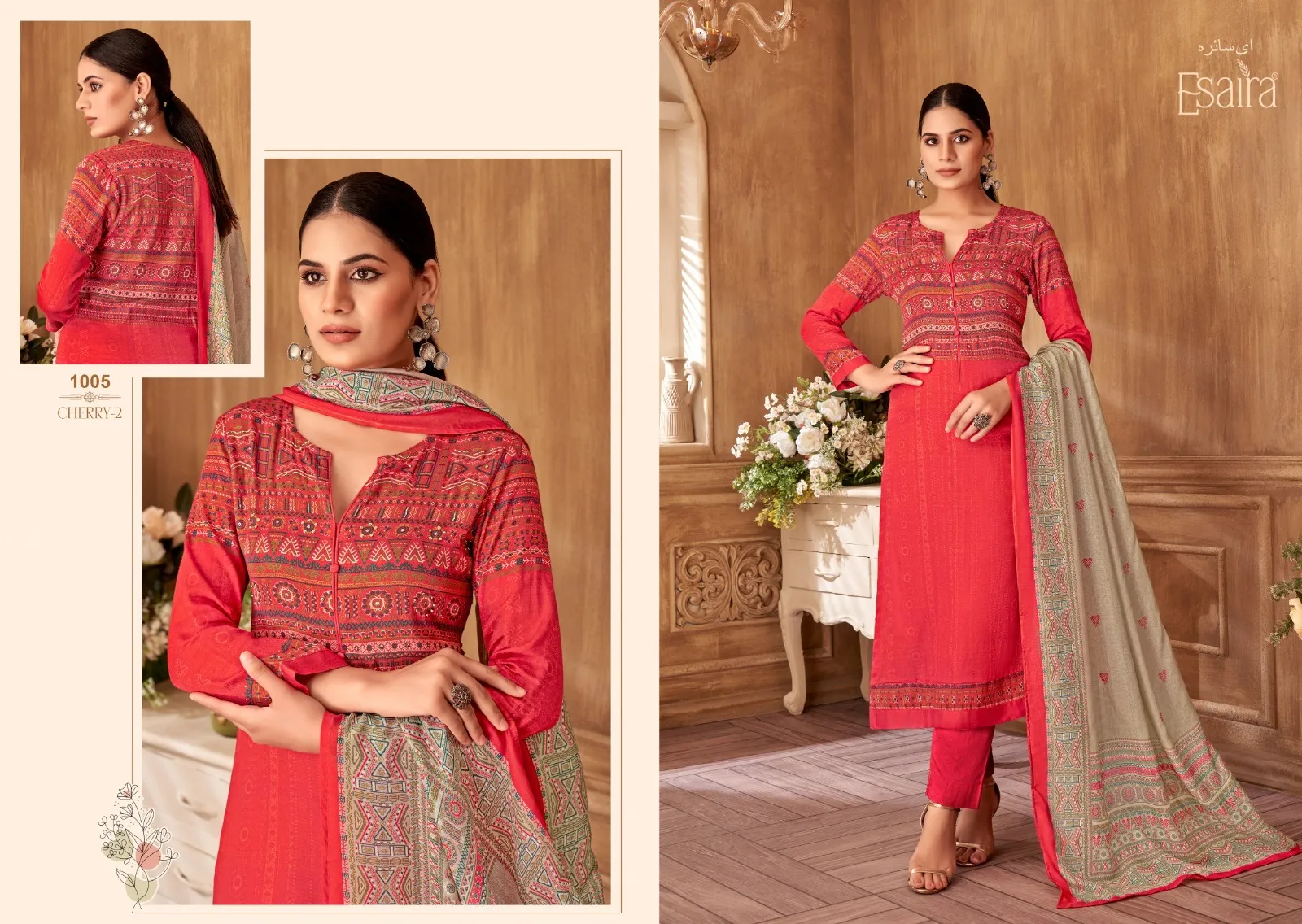Eshira Cherry 2 Cotton Satin Wholesale Unstitched Salwar Suit Collection