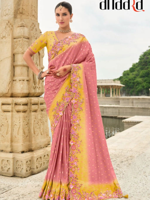 Buy Tathastu Anaara (7000 Series) embroidered silk sarees at wholesale rate.
