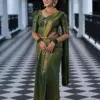 - Blouse: Running Exclusive Jacquard Border – The blouse accompanying the saree features a running exclusive Jacquard border.