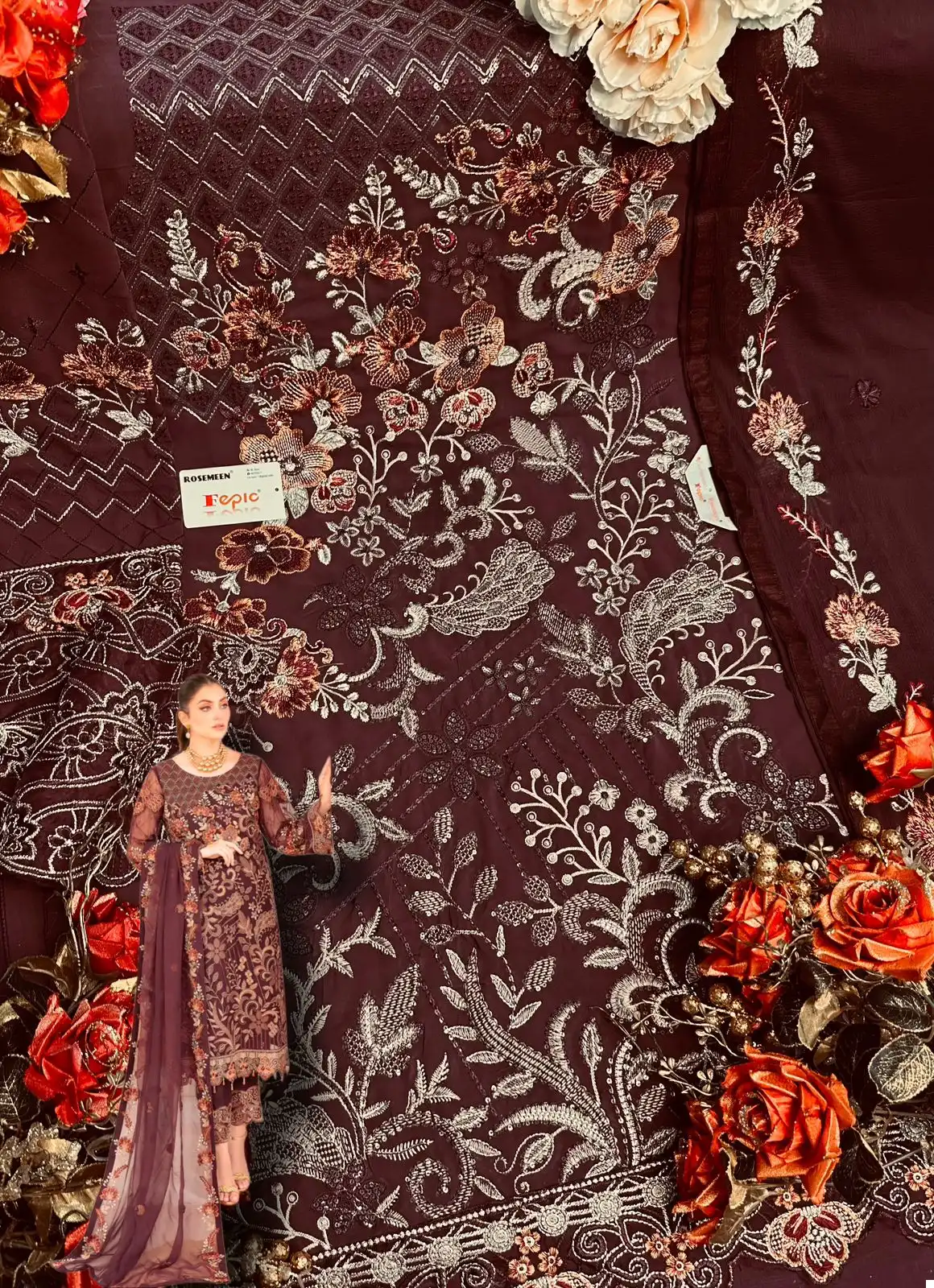 - Dupatta: Nazmeen fabric with embroidery.
