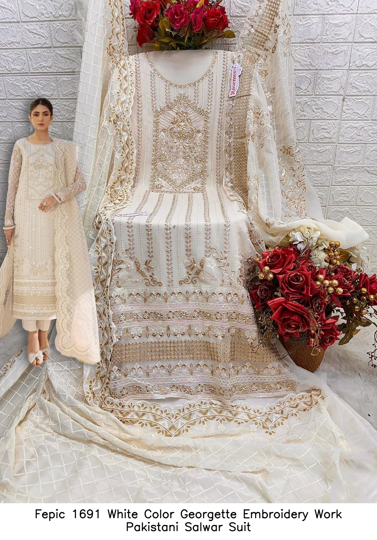 Fepic 1691 White Color Georgette Embroidery Work Pakistani Salwar Suit