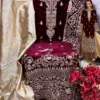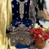 Top: This suit set features an opulent top made from velvet and adorned with heavy embroidery. The intricate embroidery work adds a touch of grandeur and sophistication to the ensemble, making it perfect for special occasions and celebrations.