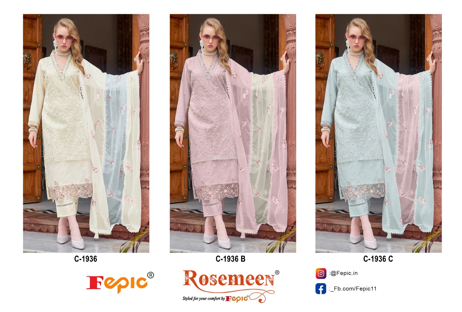 Fepic 1936 Organza Wholesale Pakistani Salwar Suit Catalog