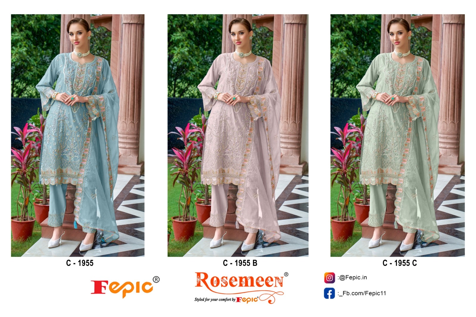 Fepic 1955 Organza Wholesale Pakistani Salwar Suit Catalog
