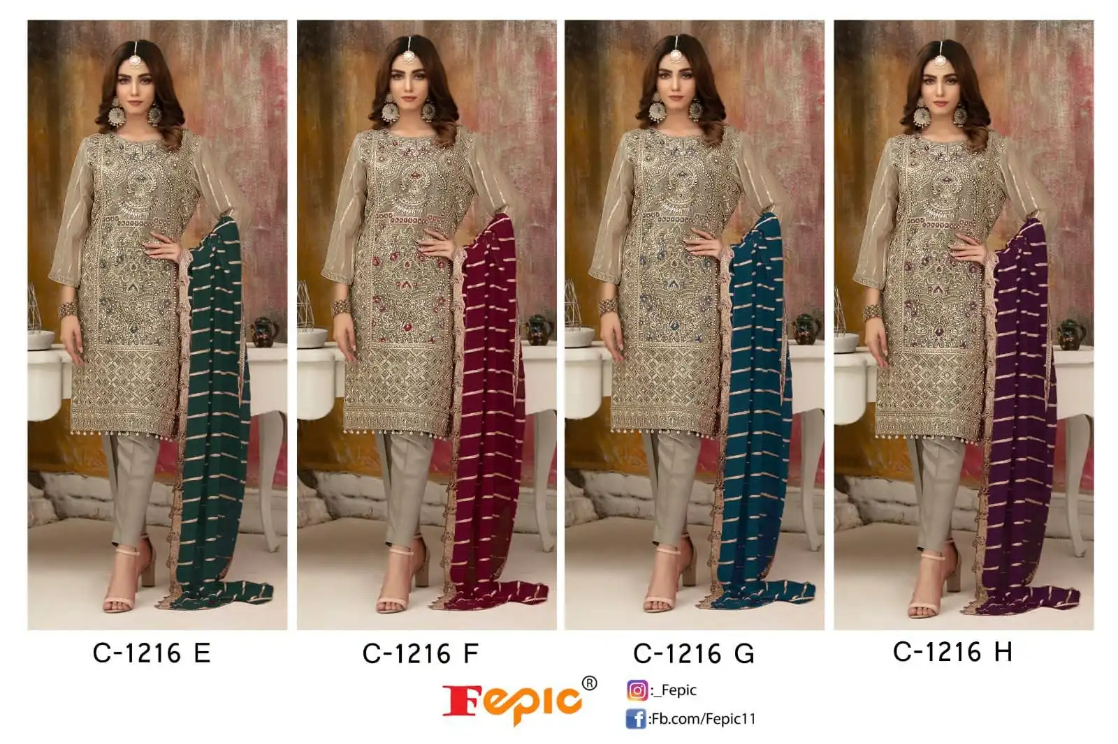 Fepic C 1216 Faux Embroidered Wholesale Pakistani Salwar Suit Catalog