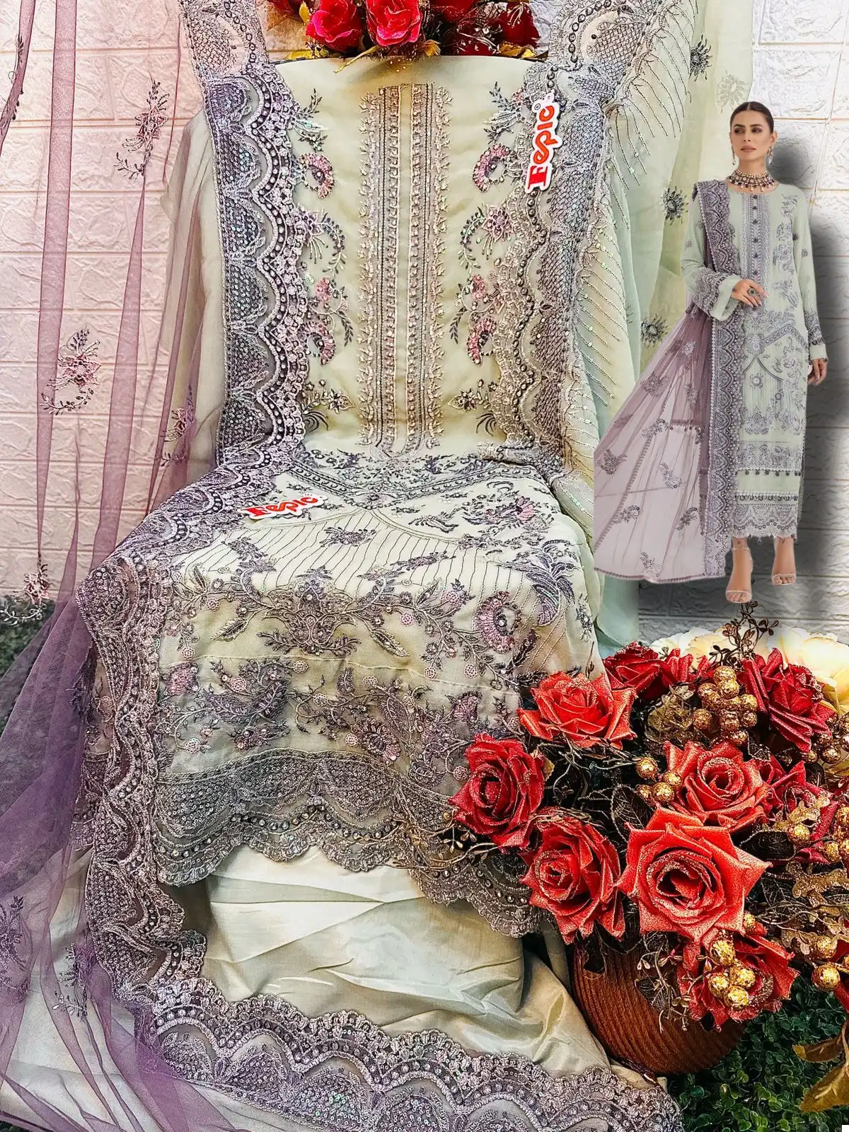Dupatta: Completing the look is a net dupatta with heavy embroidery, adding an elegant finishing touch and enhancing the overall aesthetics of the outfit.
