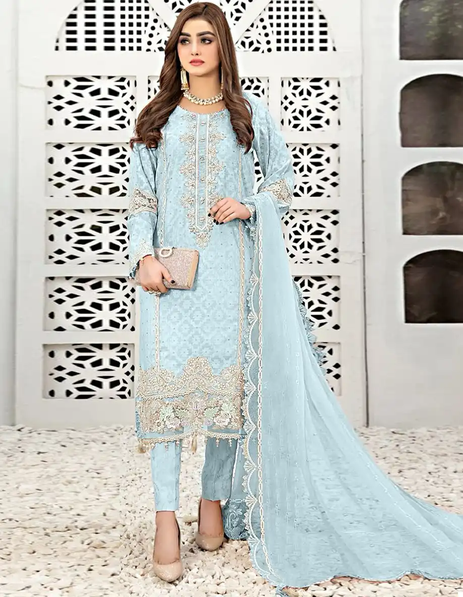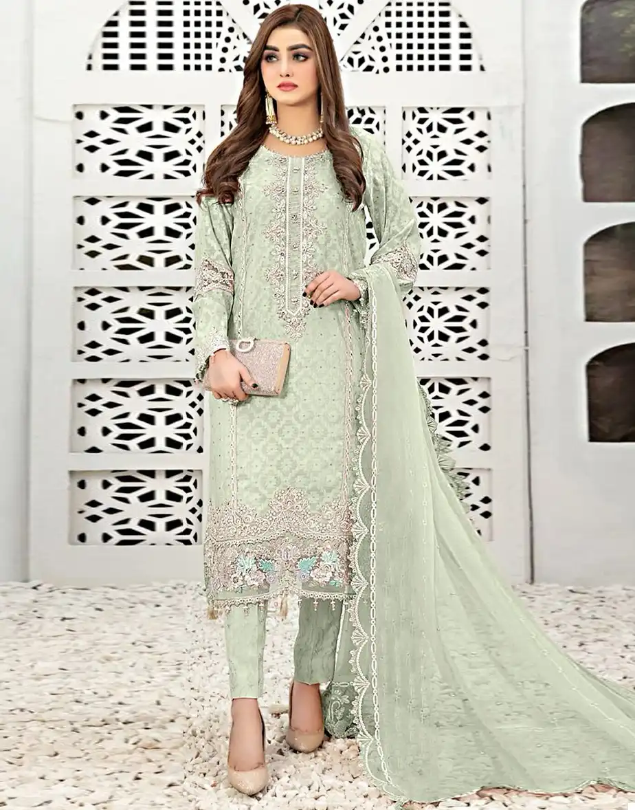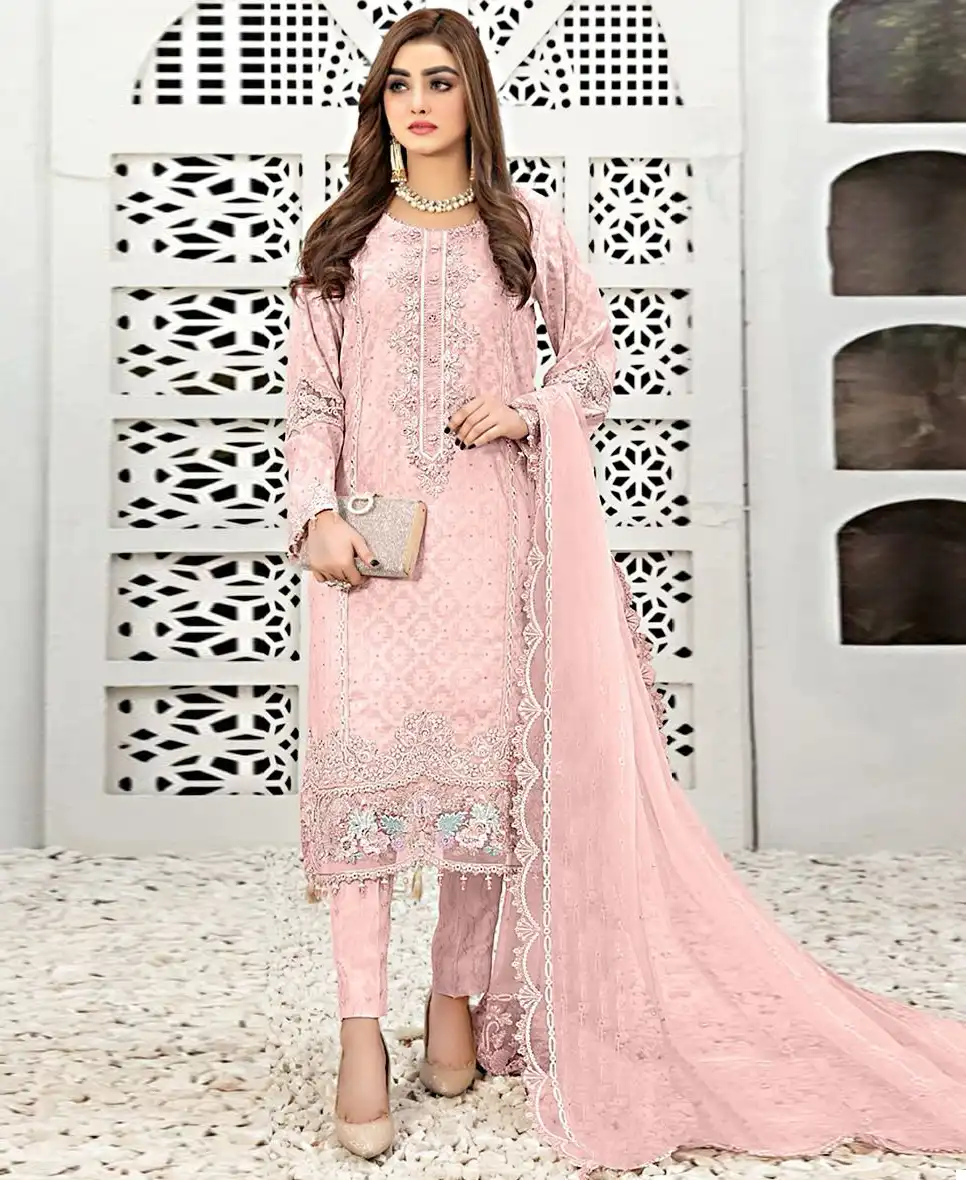 Elevate your ethnic fashion game with our Exquisite Georgette Embroidered Ensemble. This outfit is a harmonious blend of traditional charm and modern elegance, designed to make you stand out on special occasions.