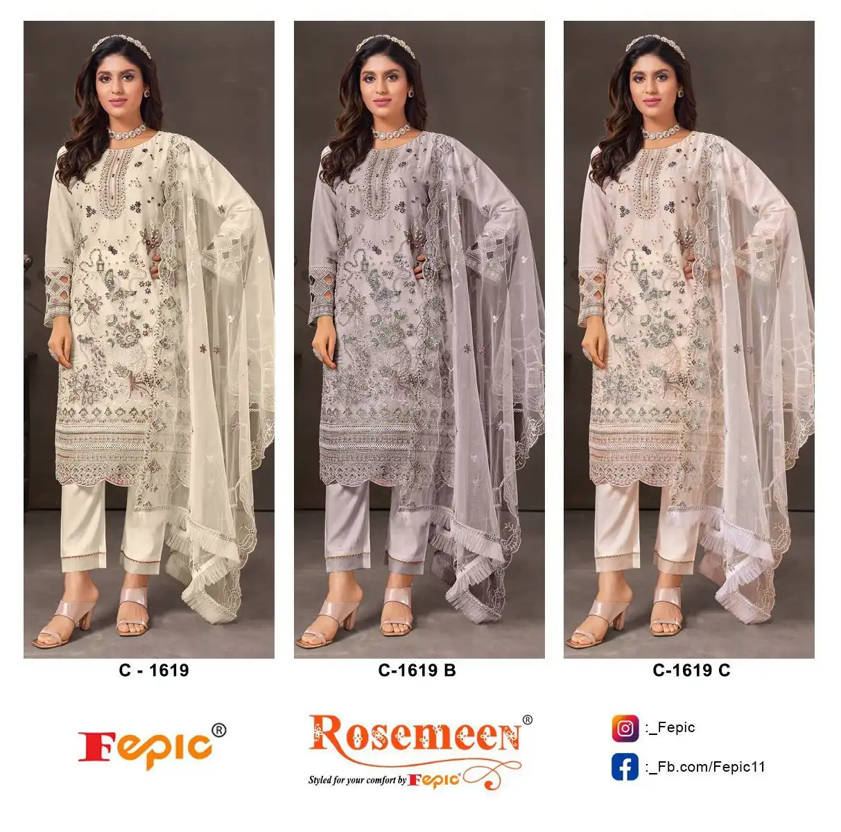 Fepic C 1619 Organza Wholesale Pakistani Salwar Suit Catalog