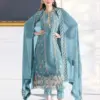 Dupatta: Completing the ensemble is our Embroidered Nazmeen Dupatta, a stunning addition to your outfit. The dupatta features intricate embroidery that adds a touch of opulence to your look. With its lightweight and graceful drape, the dupatta enhances the elegance of your ensemble, making it ideal for weddings, parties, and festive celebrations.