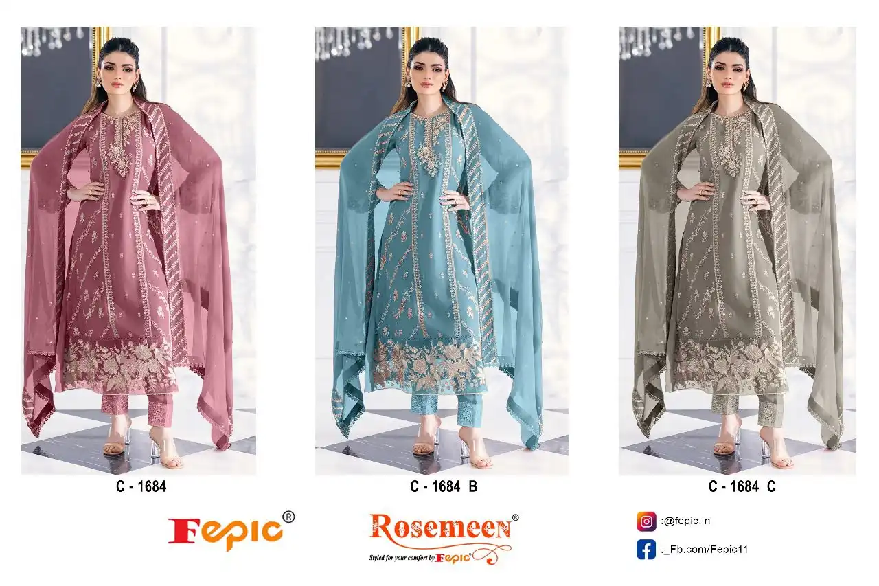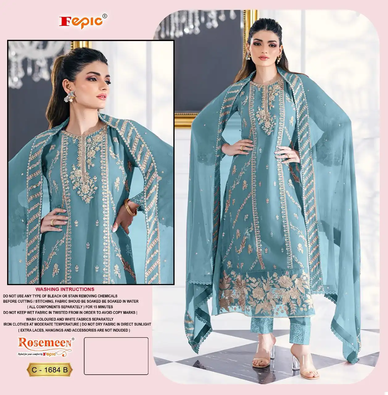 The ensemble is likely to be an ethnic Indian wear, such as a salwar suit, that is suitable for festive occasions, weddings, or formal events. The embroidery on the georgette and the detailing on the santoon bottom adds to the overall aesthetic of the outfit, making it more luxurious and desirable for those looking for embellished traditional wear.