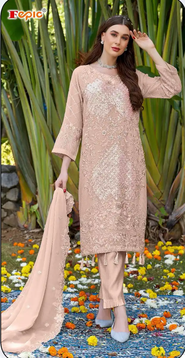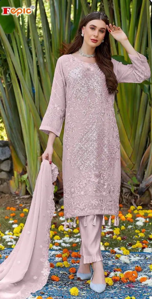 - Dupatta: Also georgette, embroidered to match the top, adding to the set’s aesthetic consistency.