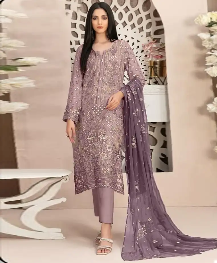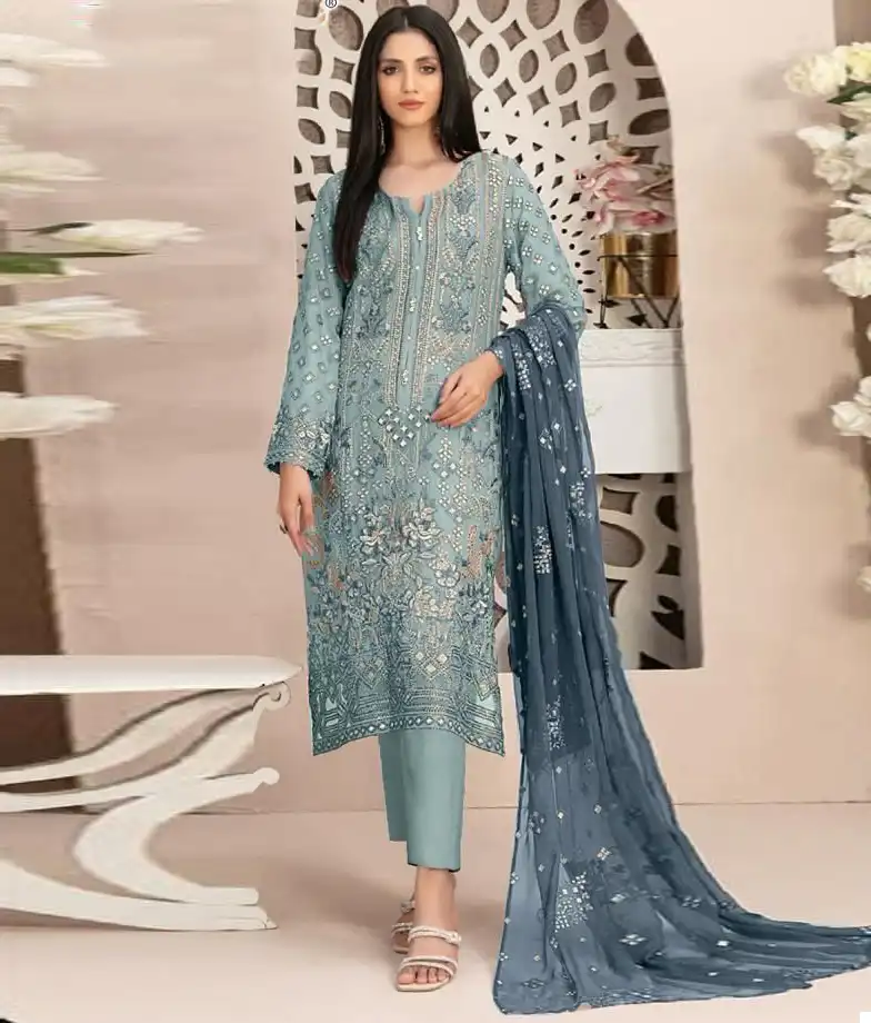 Dupatta: Completing the ensemble is our Embroidered Georgette Dupatta, a stunning addition to your outfit. The dupatta features intricate embroidery that adds a touch of opulence to your look. With its lightweight and graceful drape, the dupatta enhances the elegance of your ensemble, making it perfect for weddings, parties, and festive celebrations.