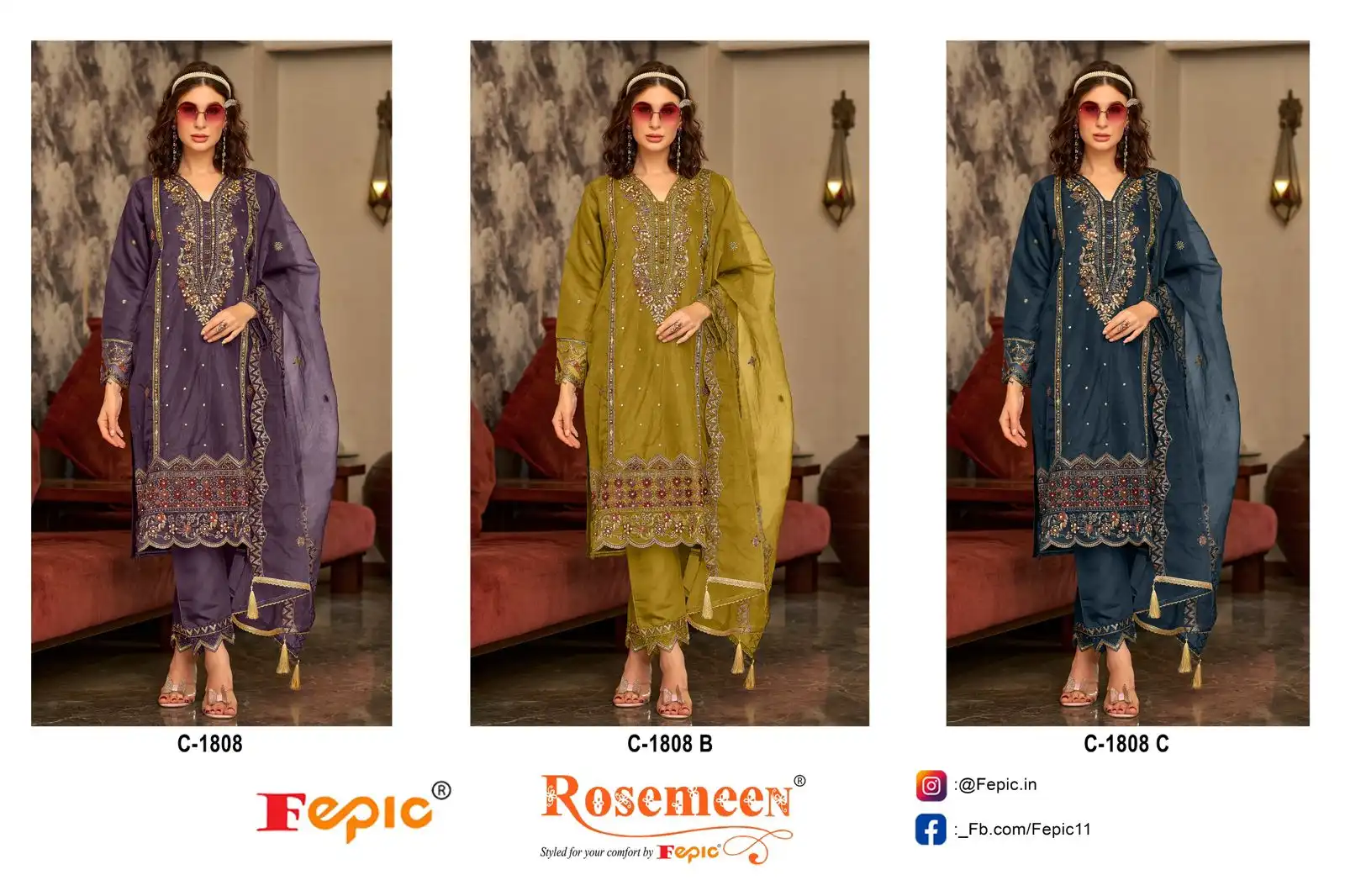 Fepic C 1808 Organza Wholesale Pakistani Salwar Suit Catalog