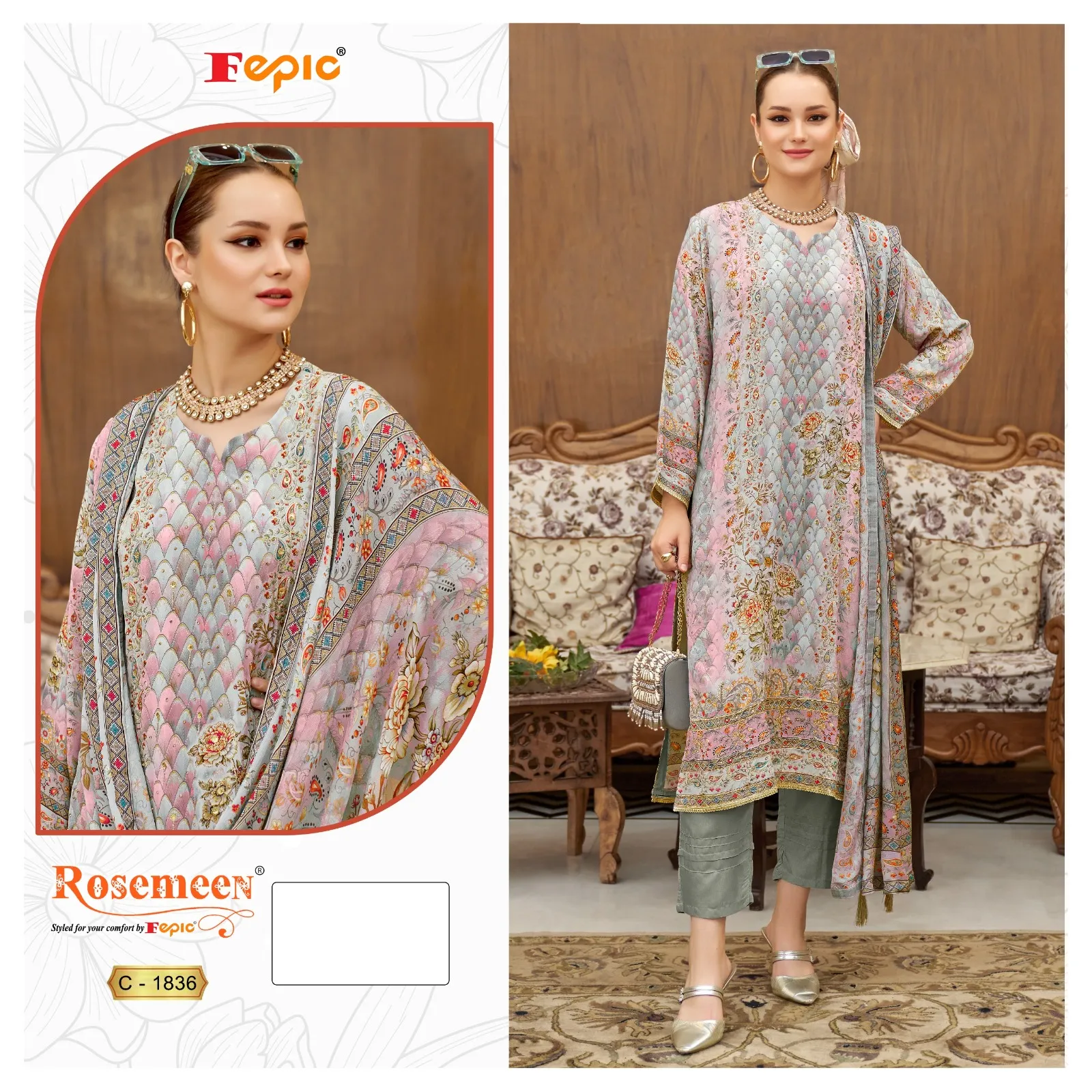 Fepic C 1836 Muslin Digital Printed Wholesale Pakistani Salwar Suit Collection