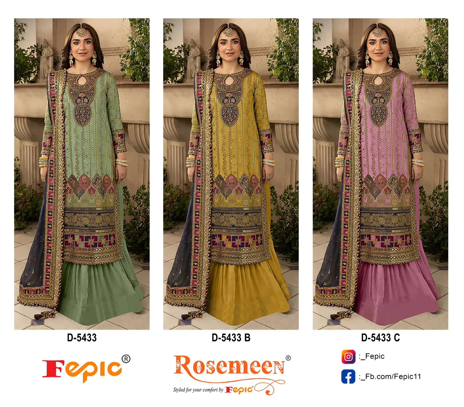 Fepic D 5433 Organza Wholesale Pakistani Salwar Suit Collection