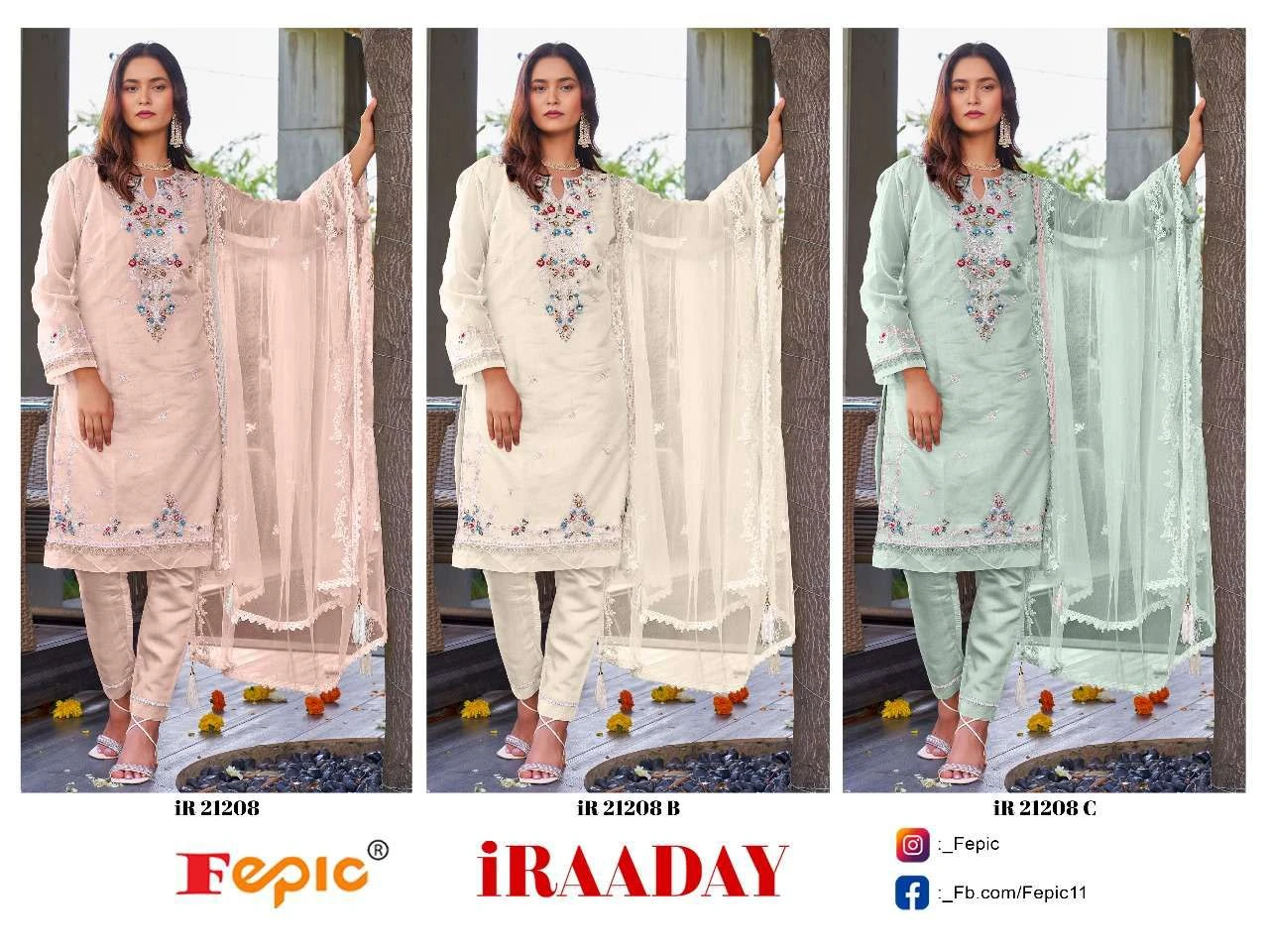 Fepic Ir 21208 Abc Organza Wholesale Pakistani Salwar Suit Catalog