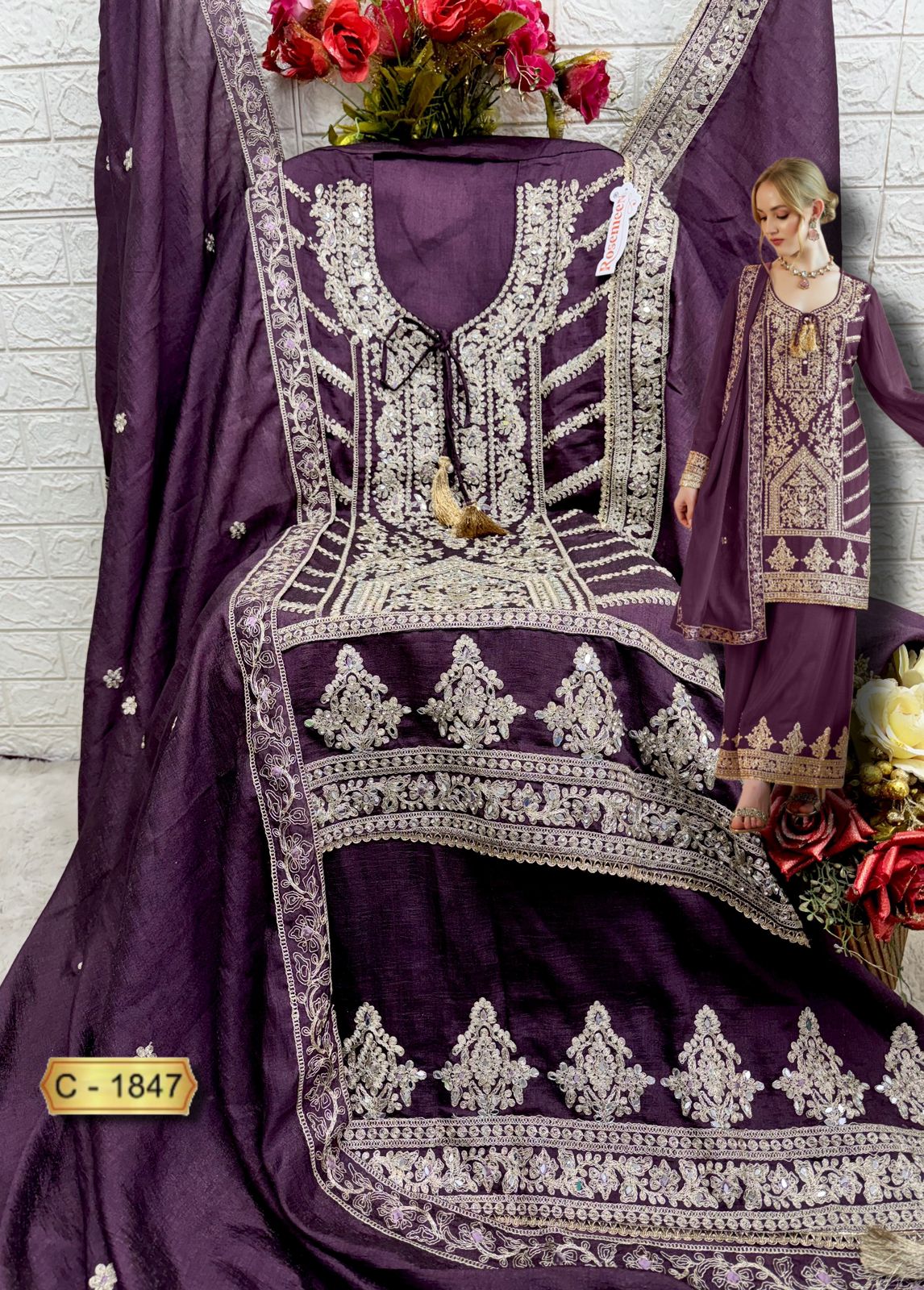 - Dupatta: Shimmer Vichitra with Embroidery