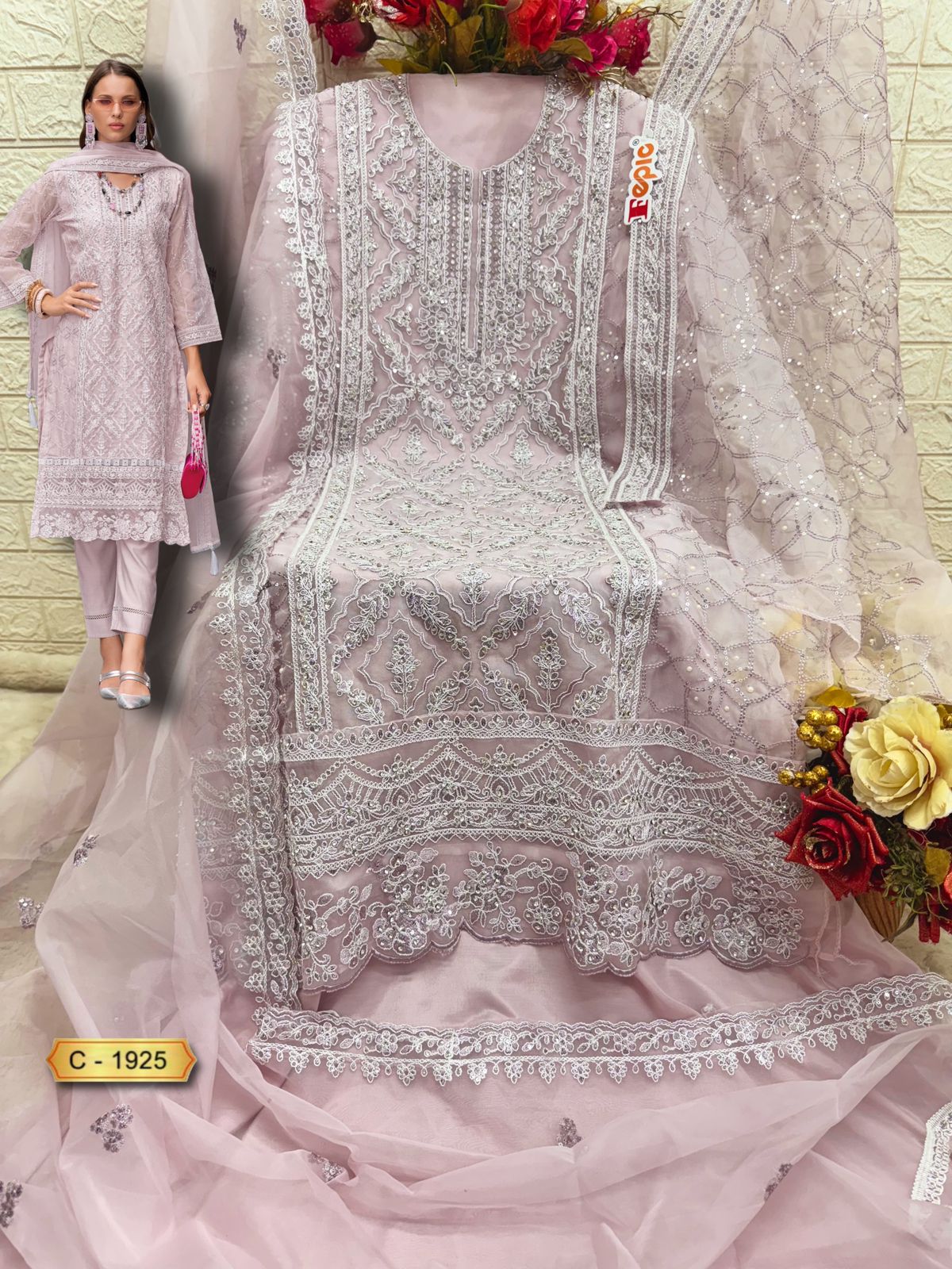 Fepic Rosemeen 1925 Organza Embroidered Pakistani Salwar Kameez.