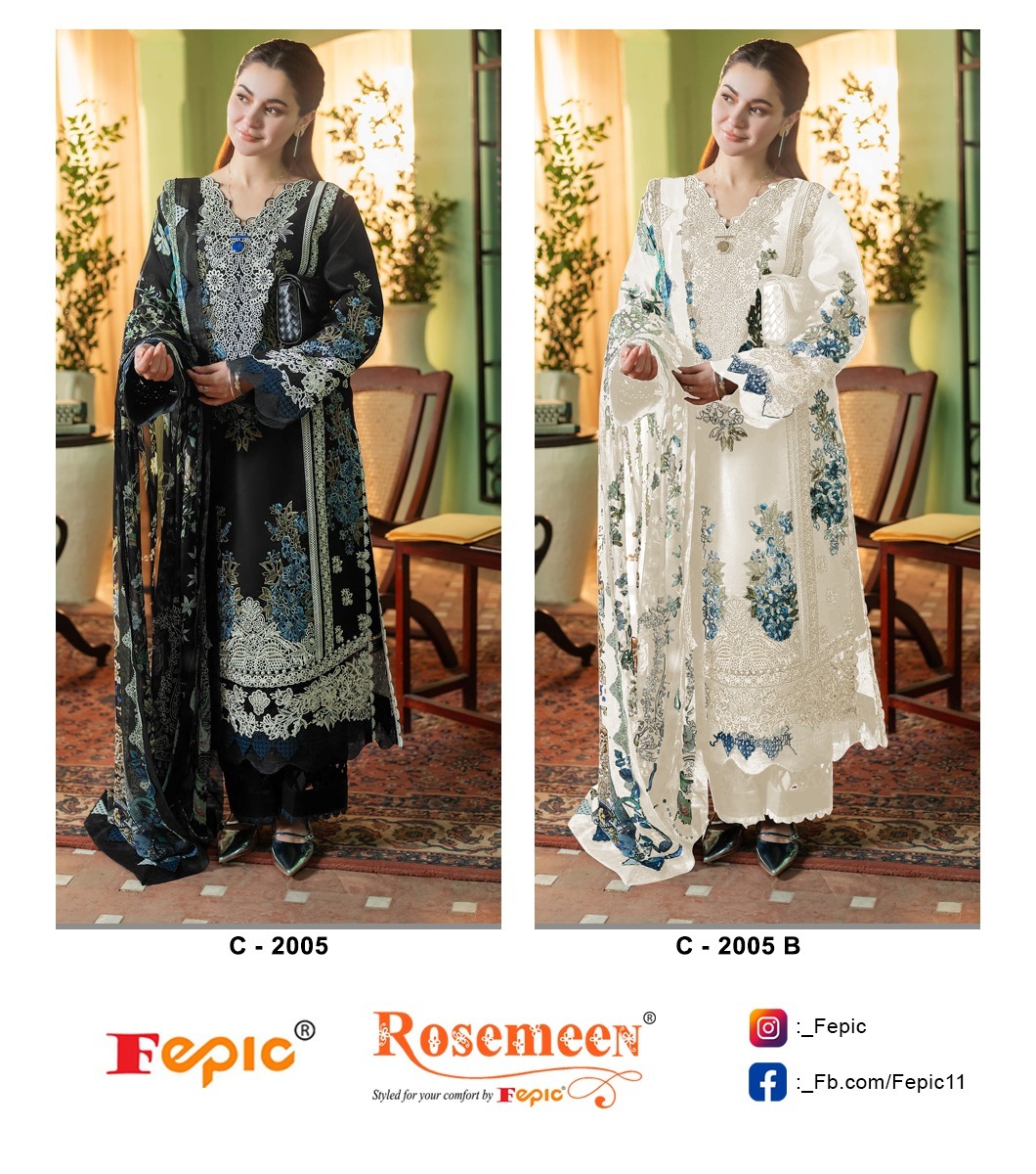 Fepic Rosemeen 2005 Wholesale Cambric Embroidered Pakistani Suit Catalog.